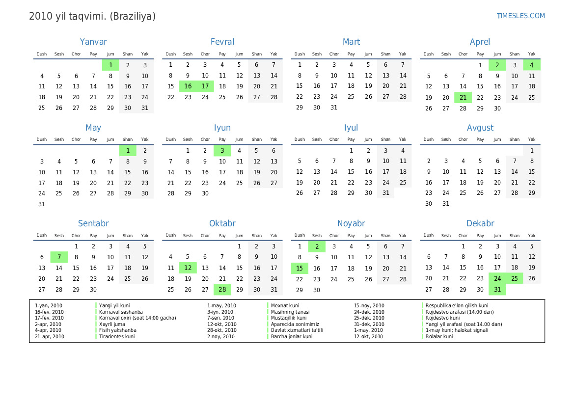 28-okt, 2010 Davlat xizmatlari ta'tili
