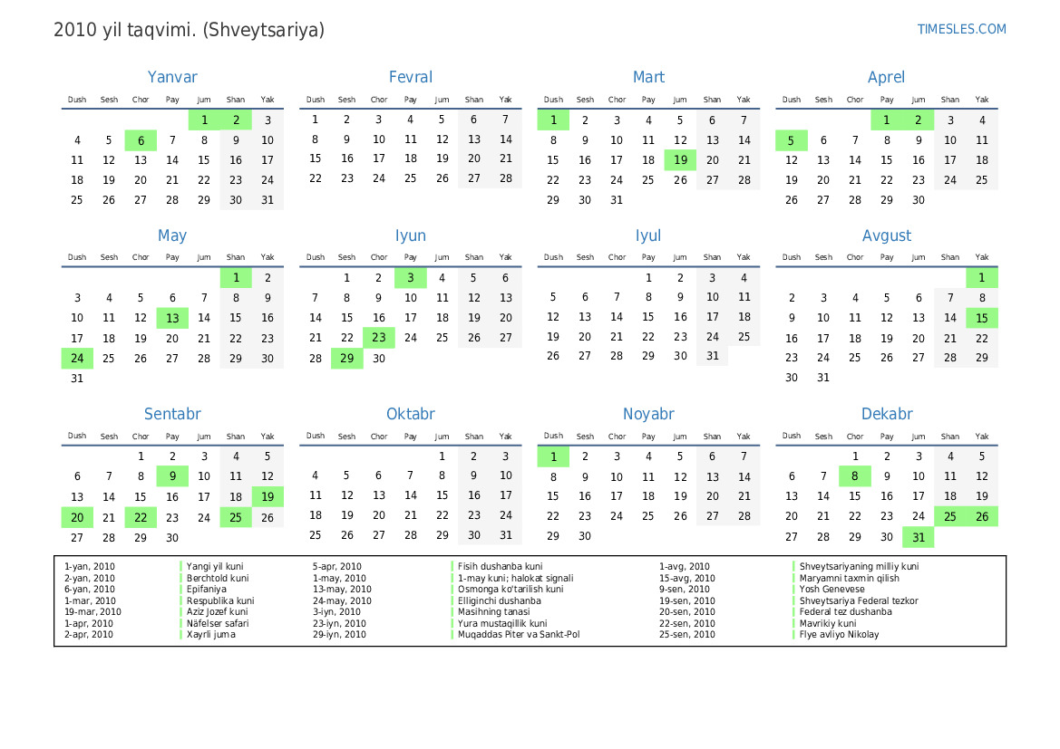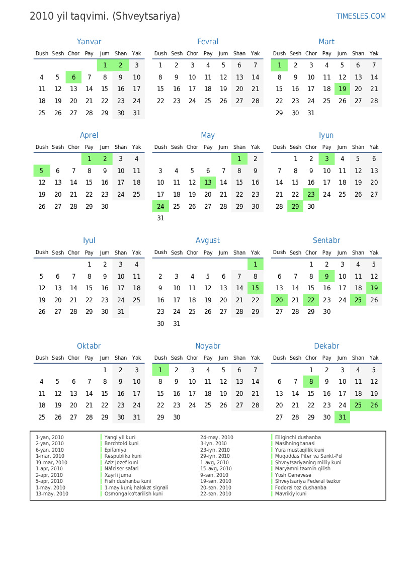 1-avg, 2010 Shveytsariyaning milliy kuni
