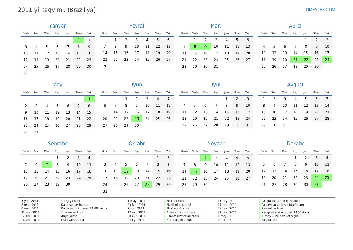 28-okt, 2011 Davlat xizmatlari ta'tili