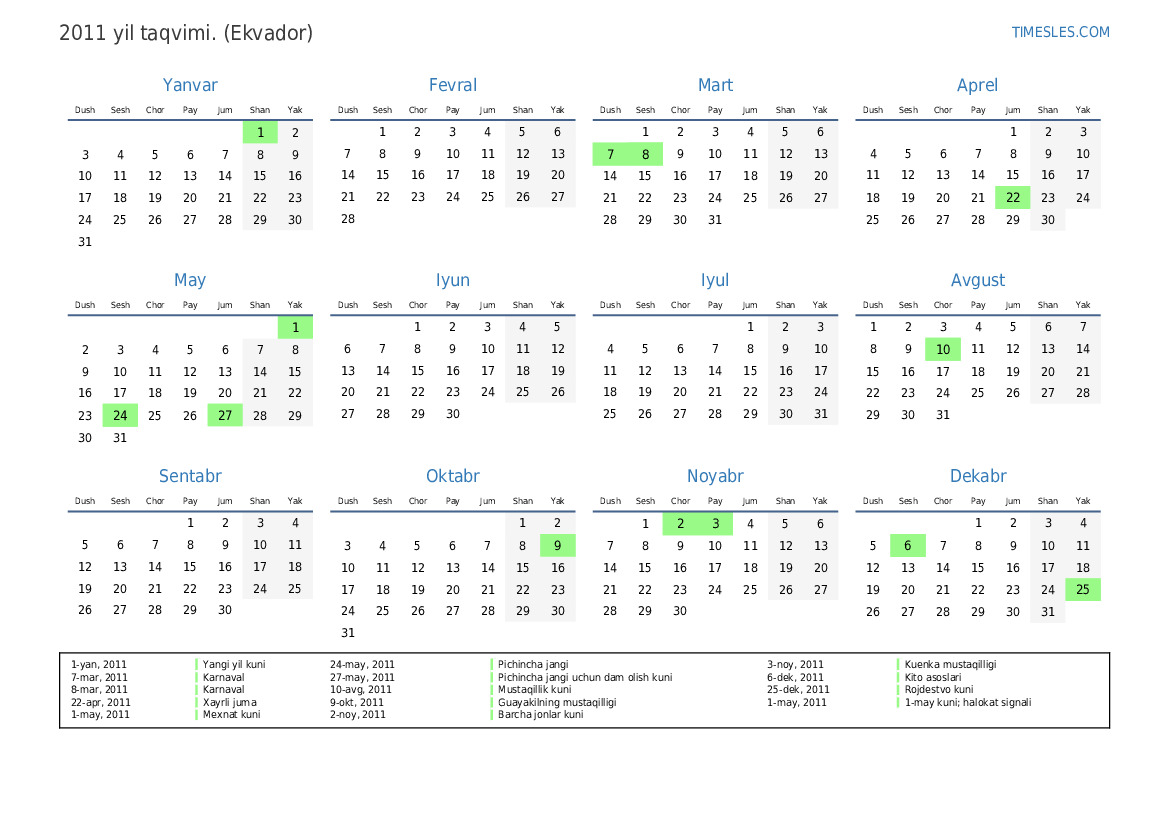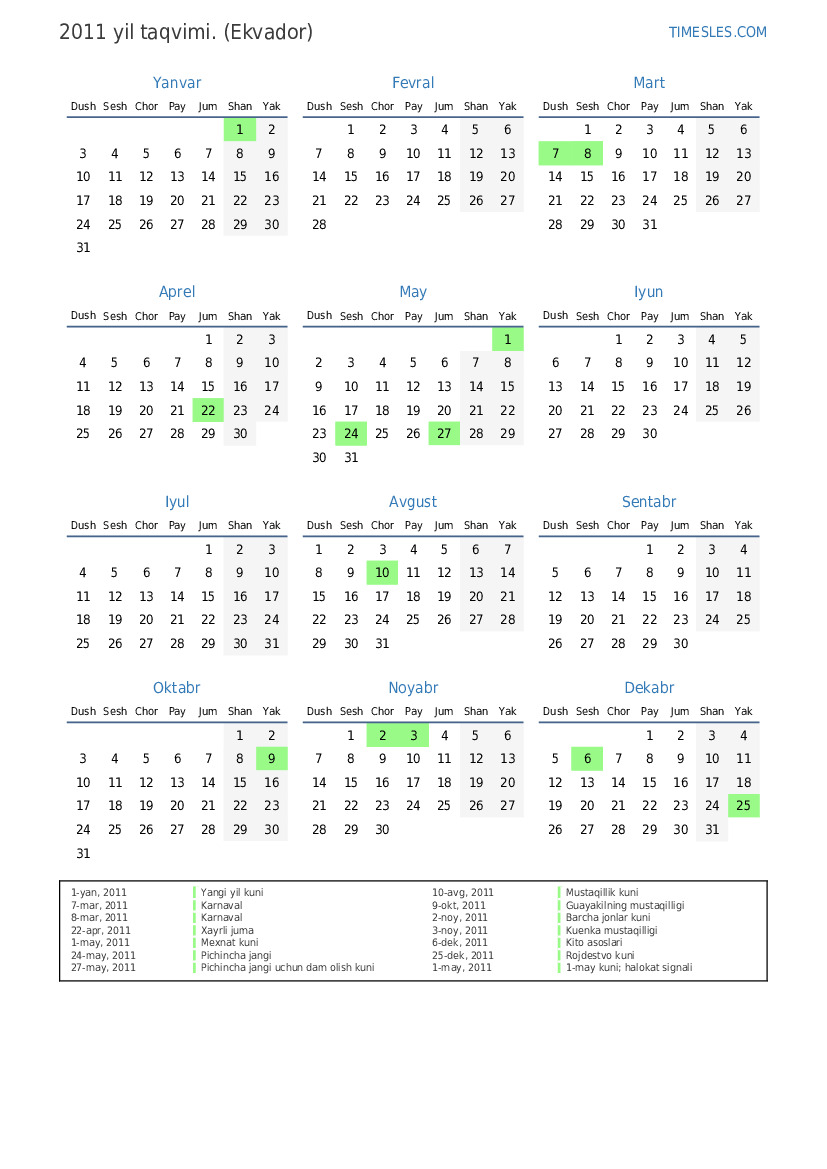 27-may, 2011 Pichincha jangi uchun dam olish kuni