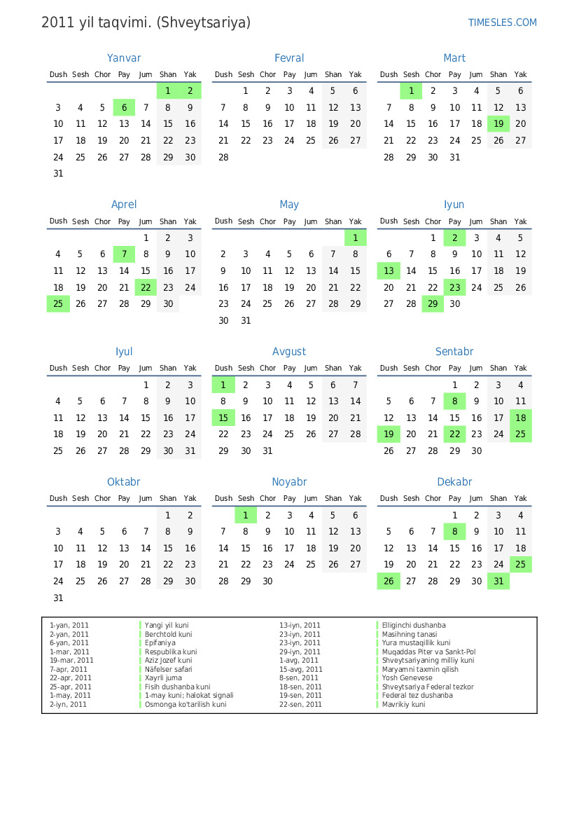 19-sen, 2011 Federal tez dushanba