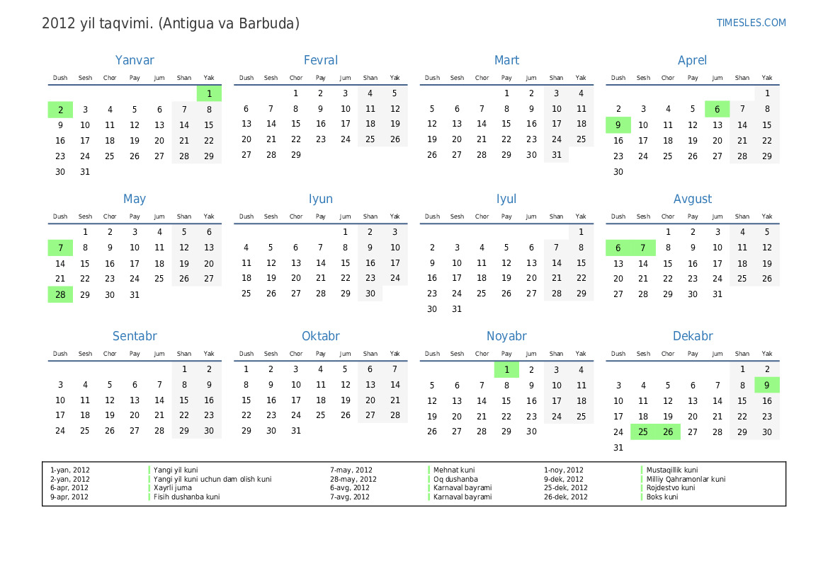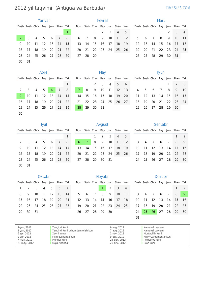 2-yan, 2012 Yangi yil kuni uchun dam olish kuni