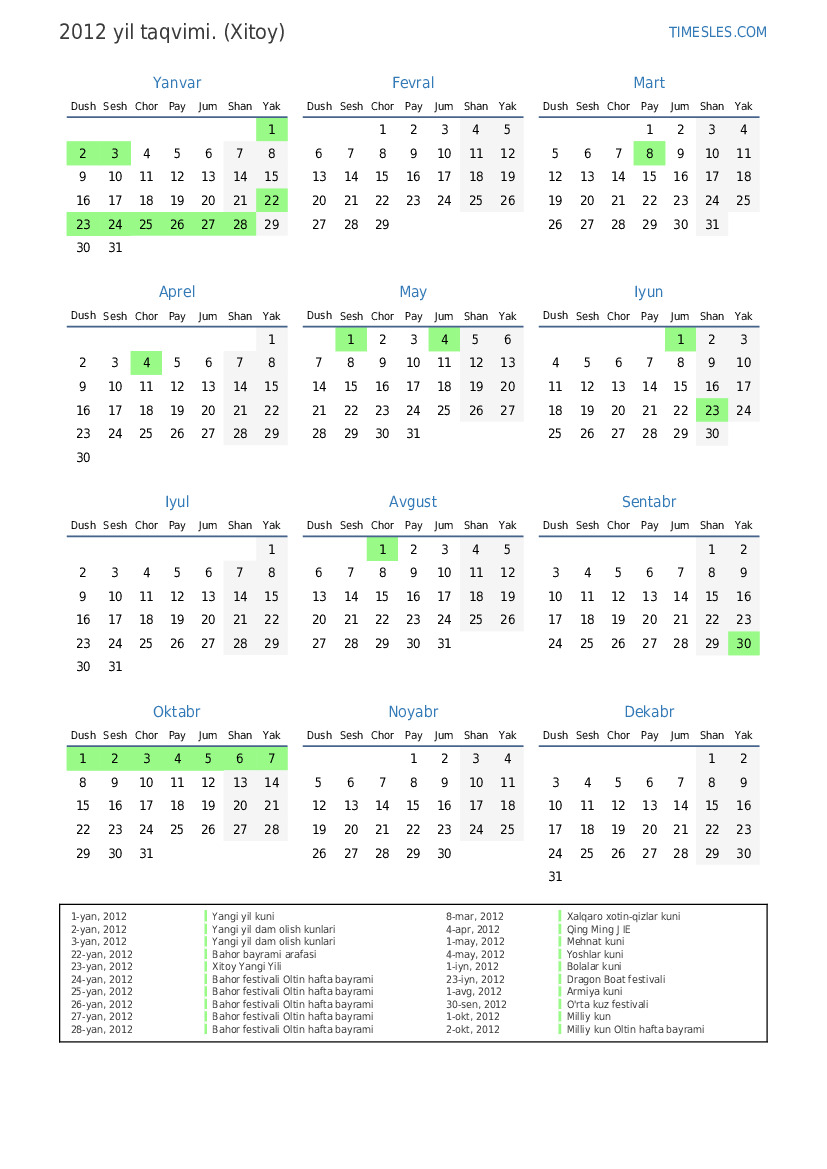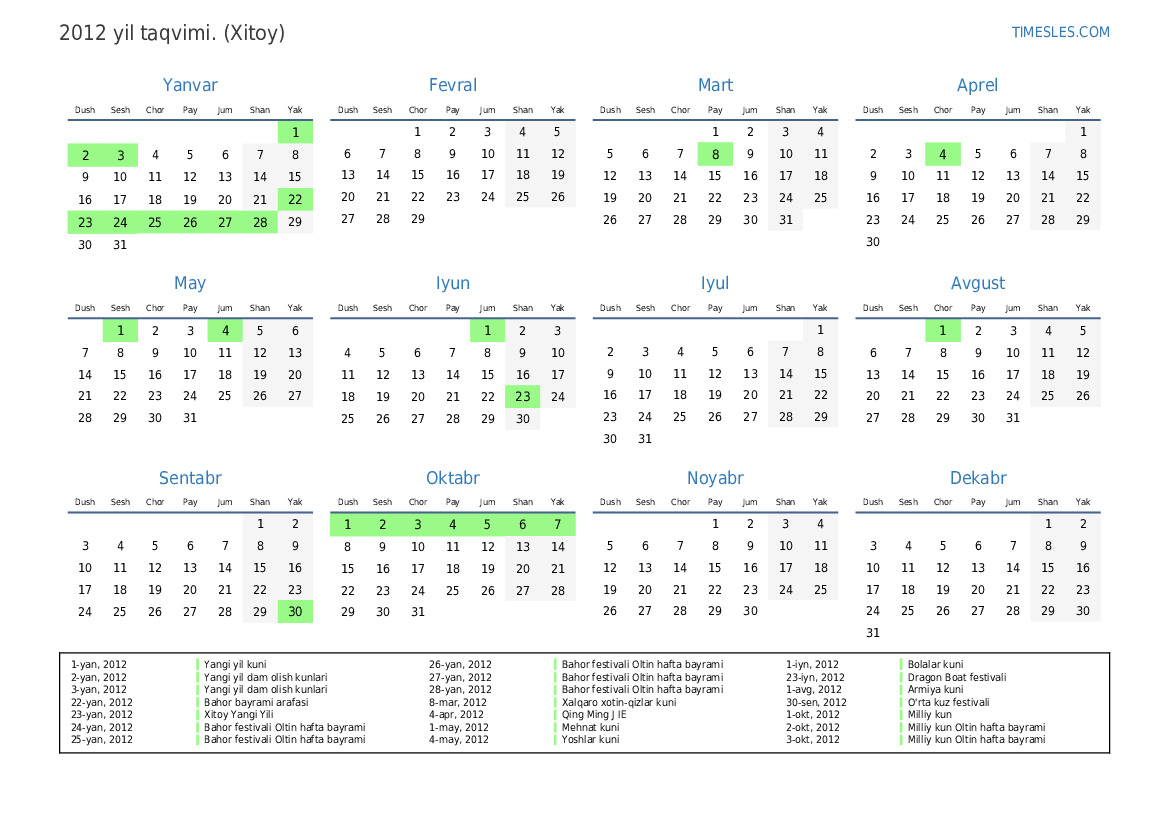 24-yan, 2012 Bahor festivali Oltin hafta bayrami