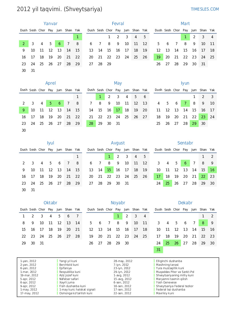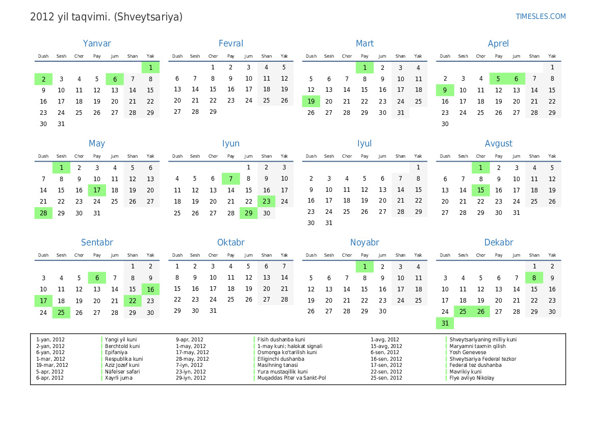 1-avg, 2012 Shveytsariyaning milliy kuni