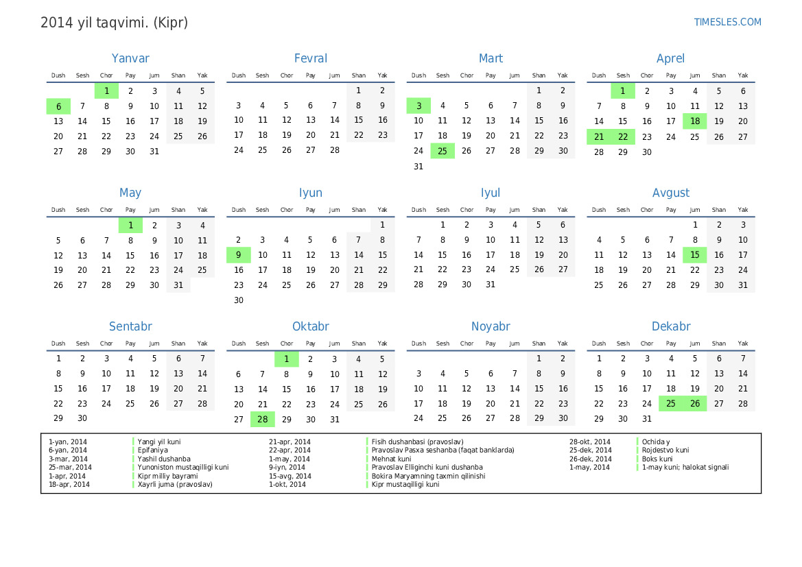 22-apr, 2014 Pravoslav Pasxa seshanba (faqat banklarda)