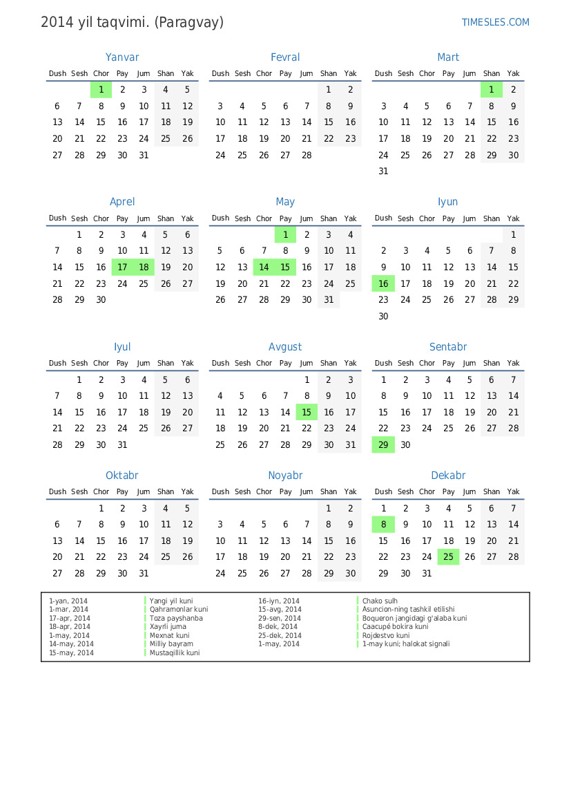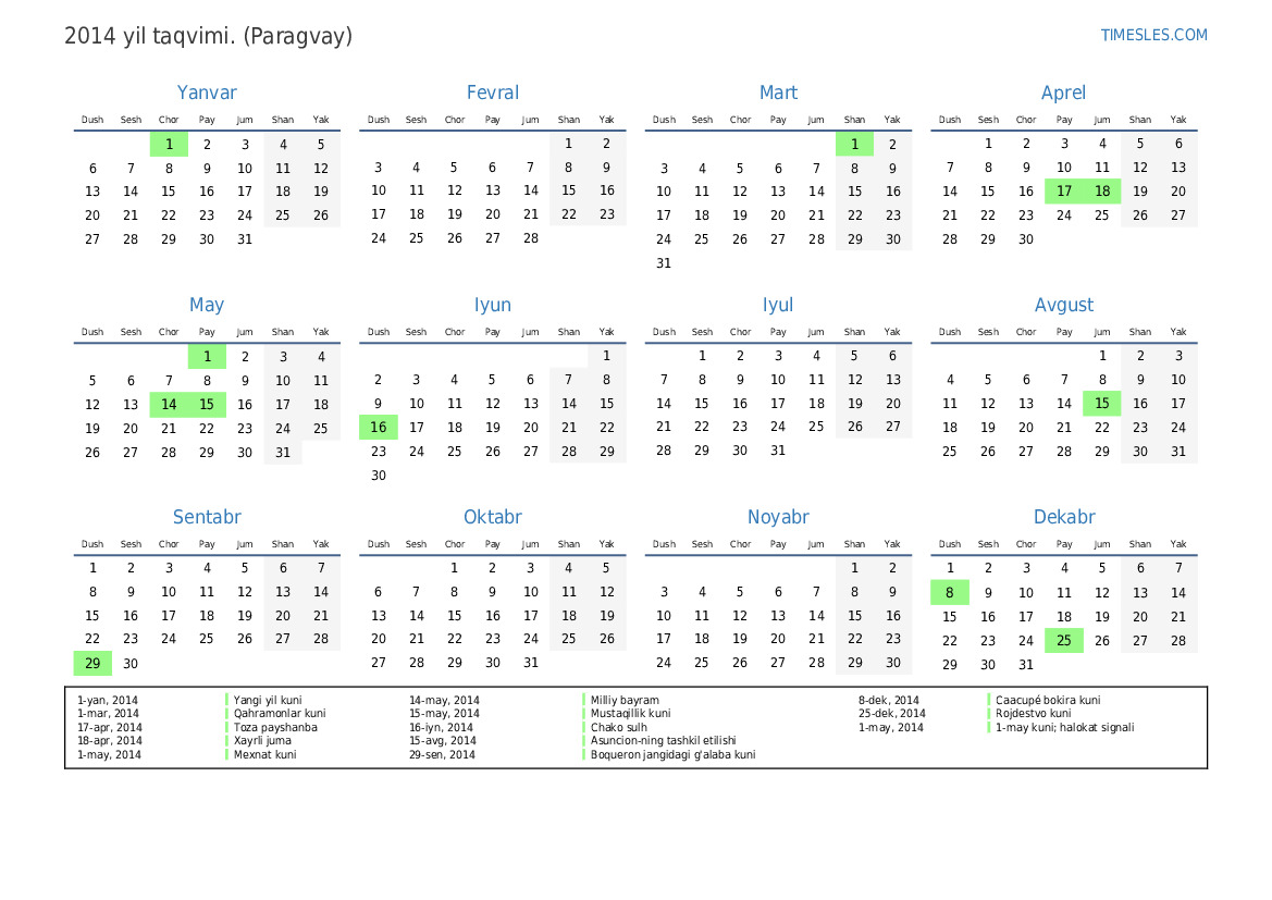 1-yan, 2014 Yangi yil kuni
