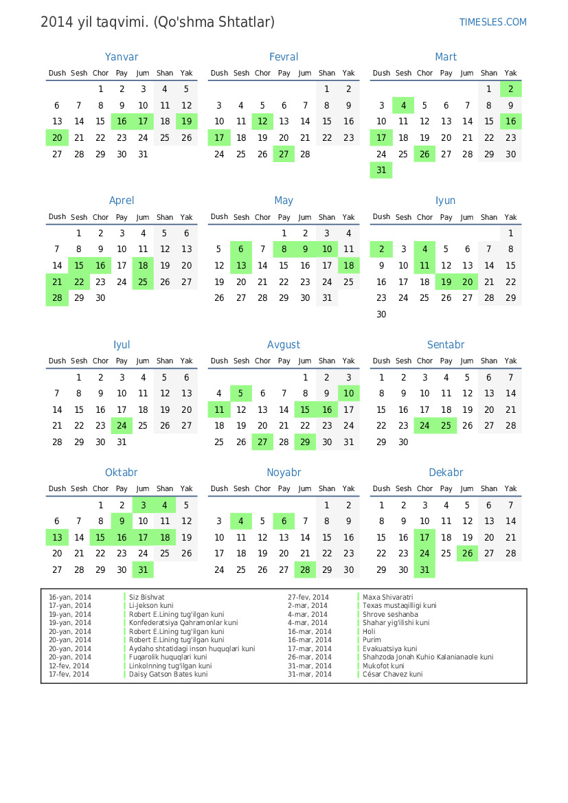 14-yan, 2014 Payg'ambarning tavallud kuni