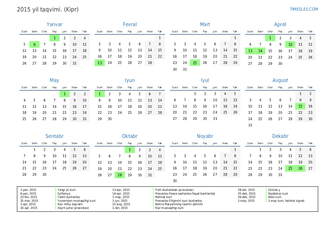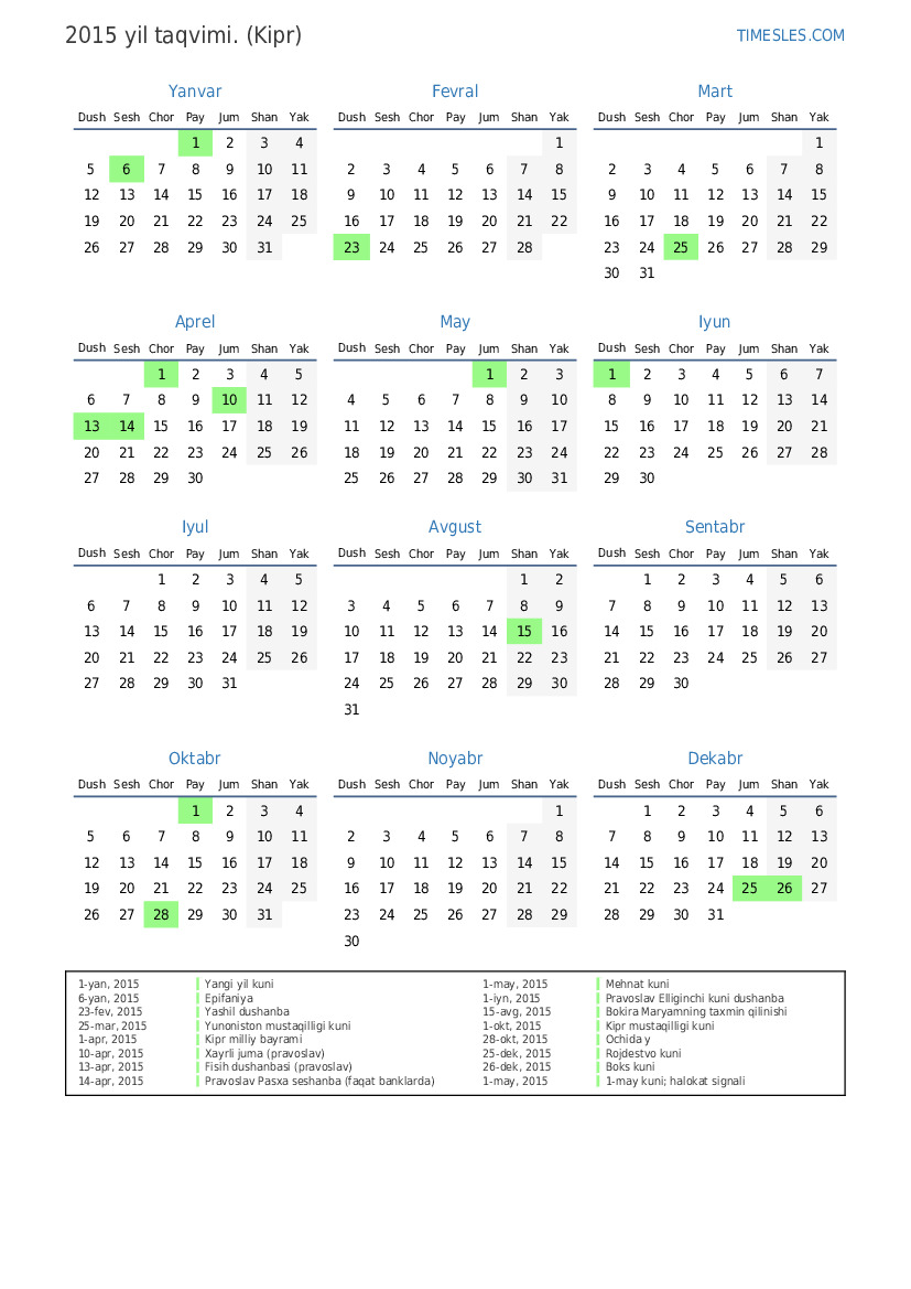 14-apr, 2015 Pravoslav Pasxa seshanba (faqat banklarda)