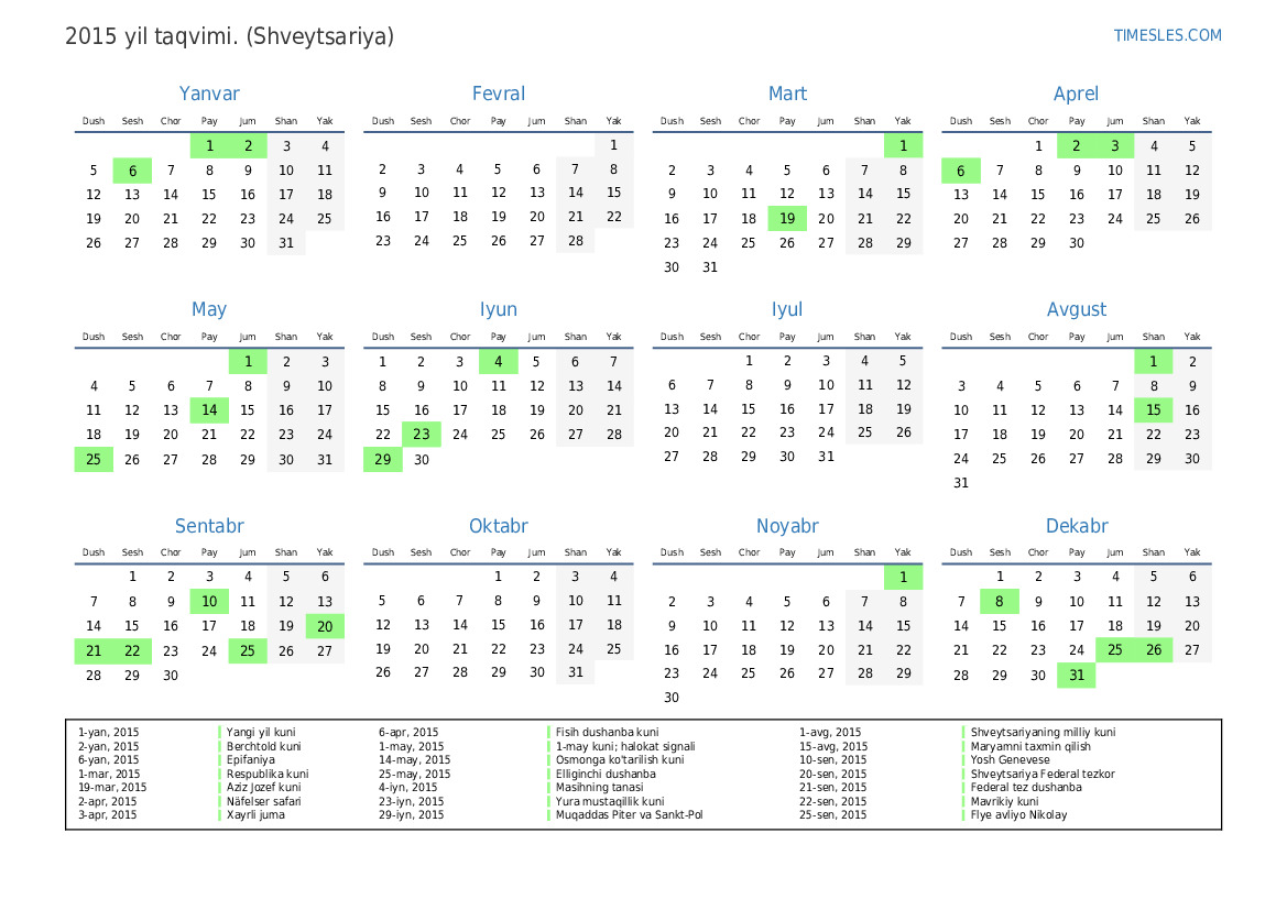 1-avg, 2015 Shveytsariyaning milliy kuni