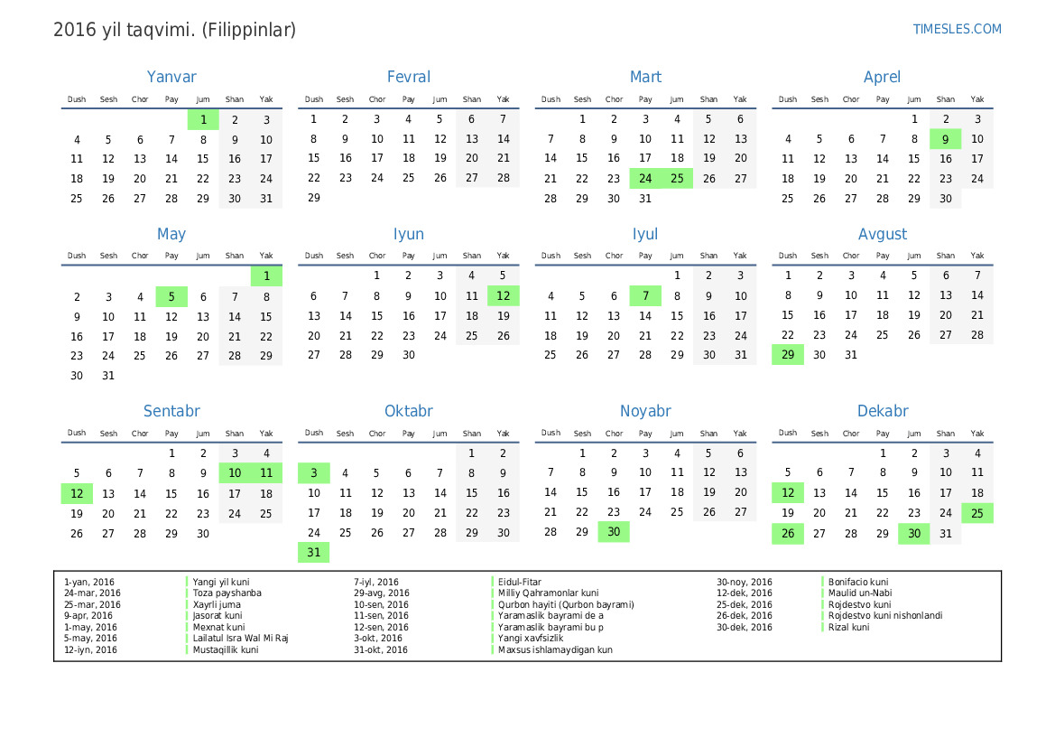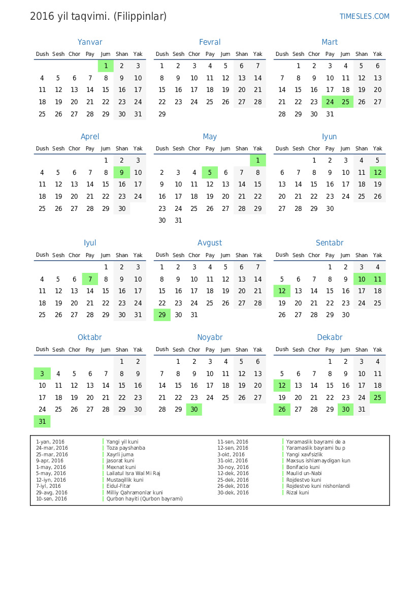 31-okt, 2016 Maxsus ishlamaydigan kun