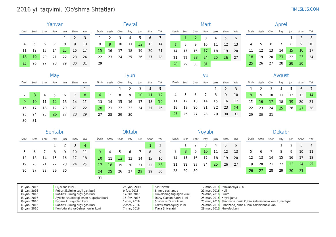 26-dek, 2016 Rojdestvo kuni uchun dam olish kuni