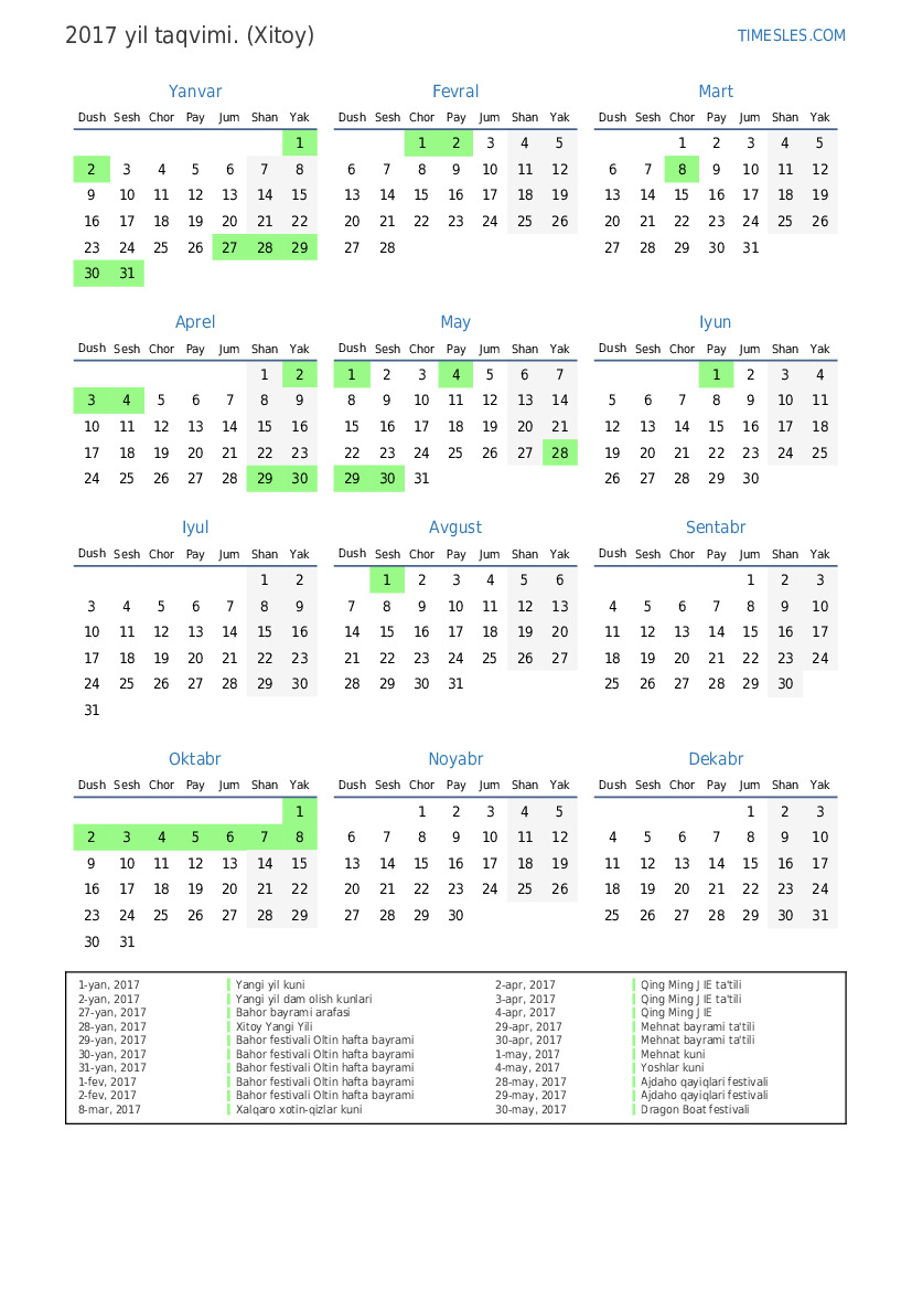 2-okt, 2017 Milliy kun Oltin hafta bayrami
