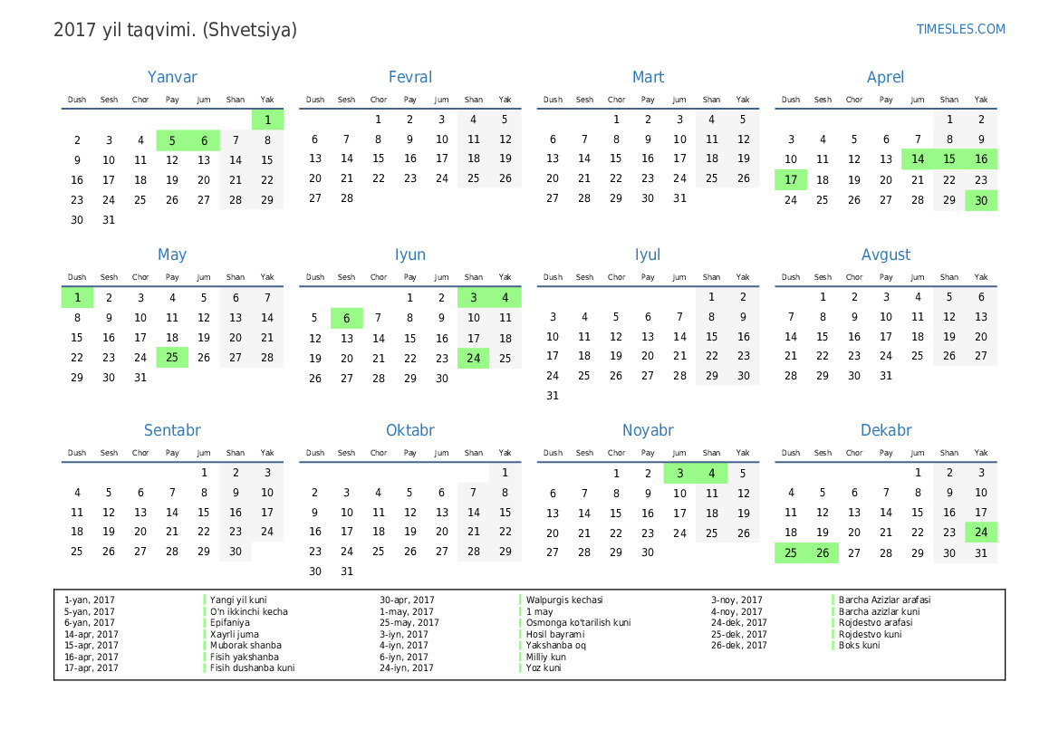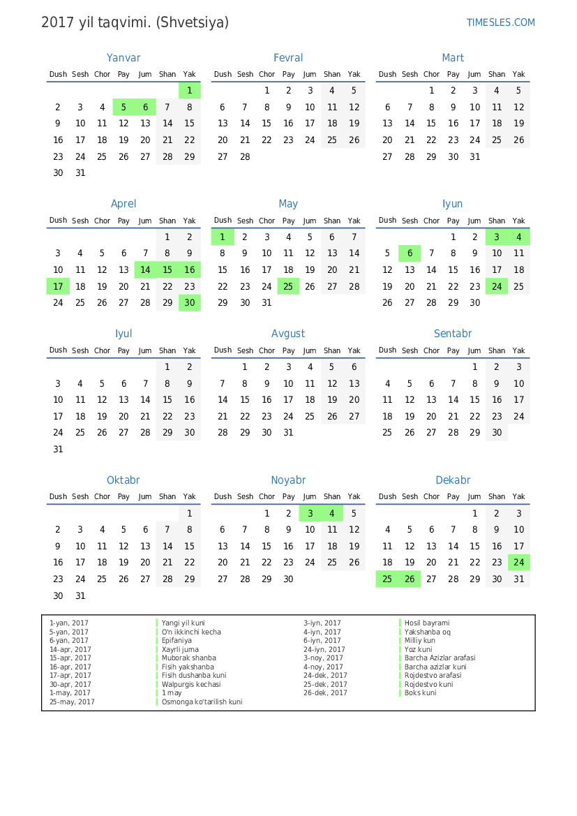 1-yan, 2017 Yangi yil kuni