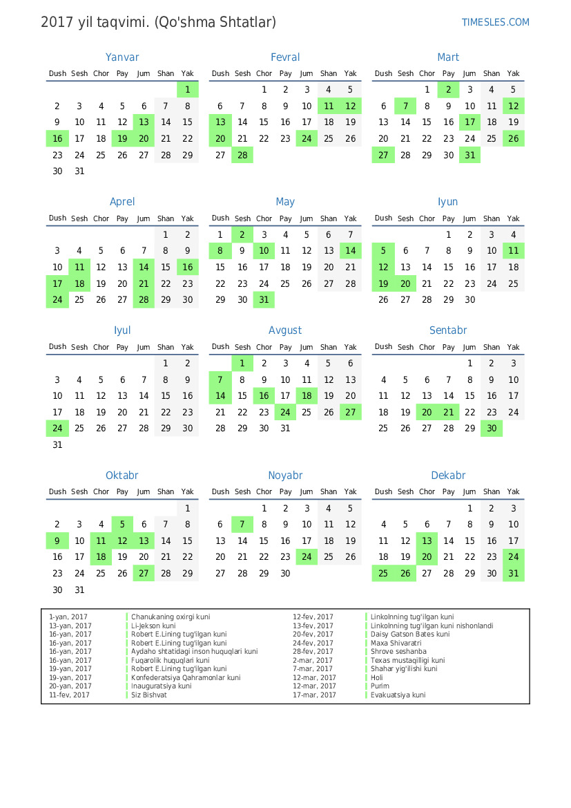 2-yan, 2017 Yangi yil kuni uchun dam olish kuni