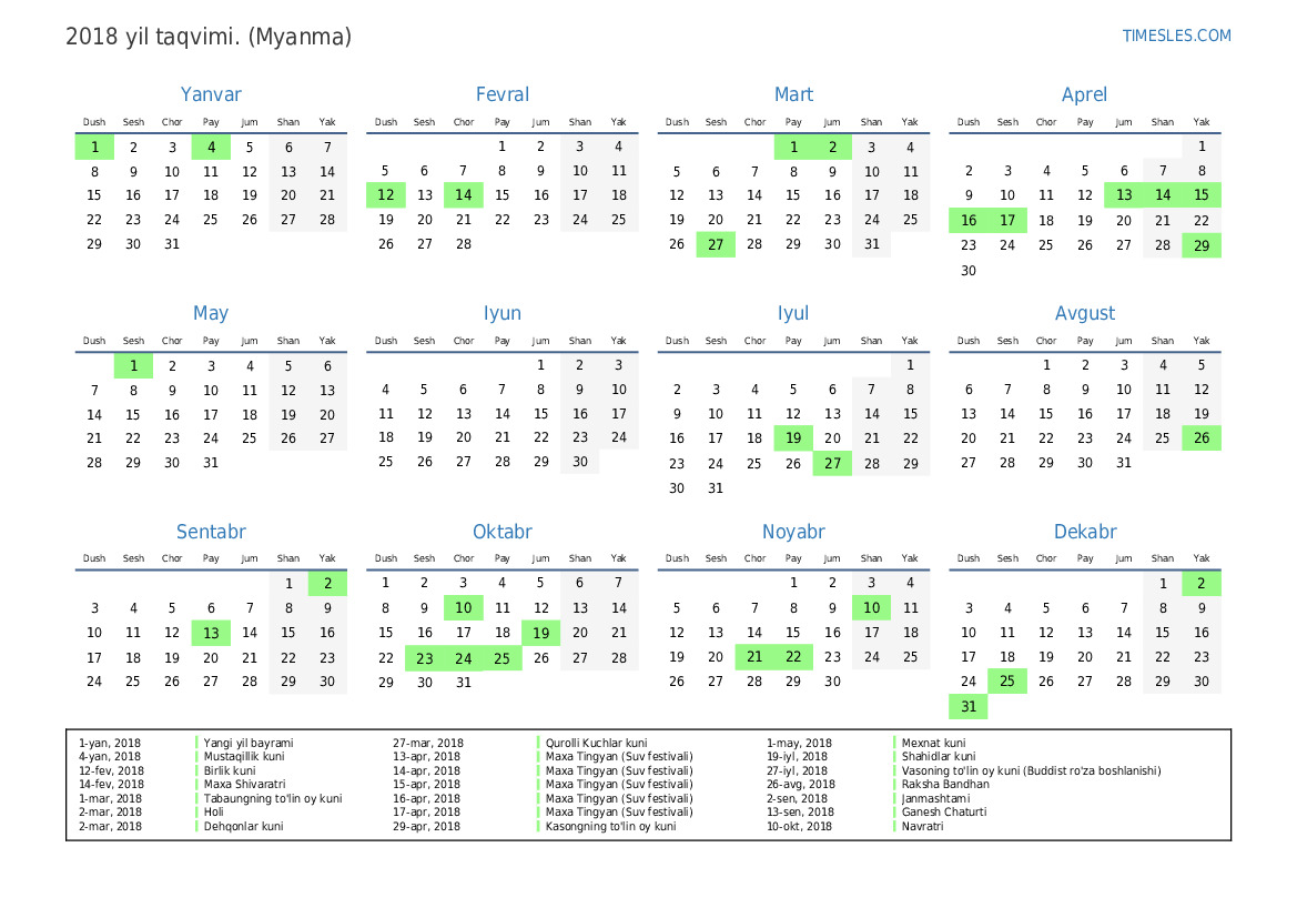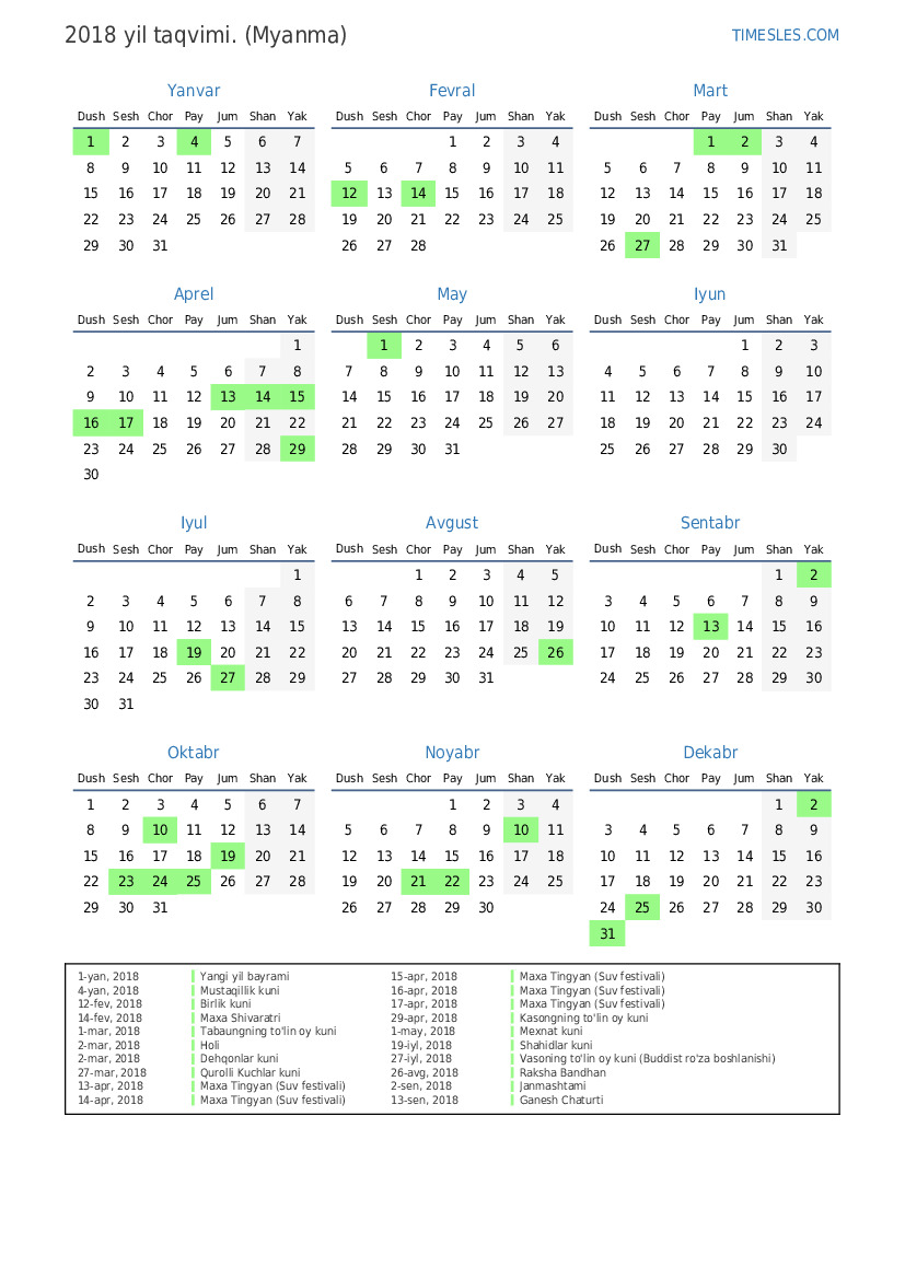 1-mar, 2018 Tabaungning to'lin oy kuni