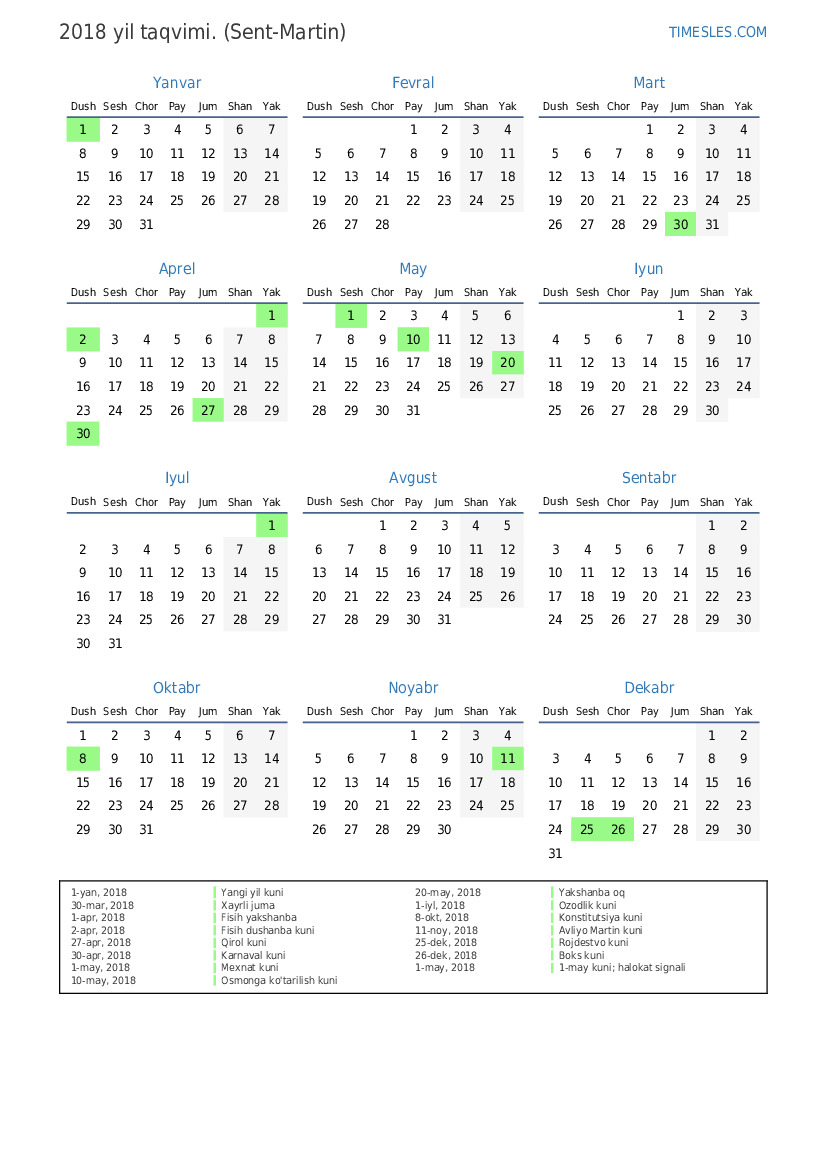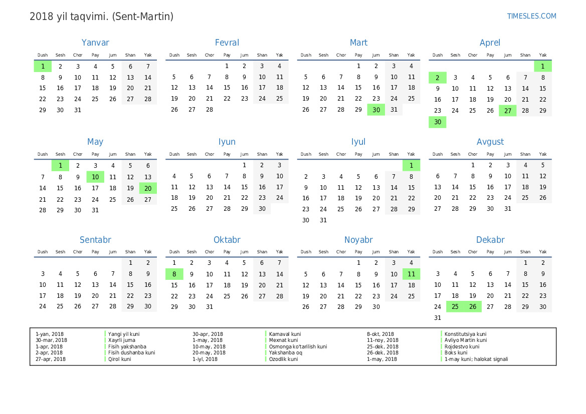 1-yan, 2018 Yangi yil kuni