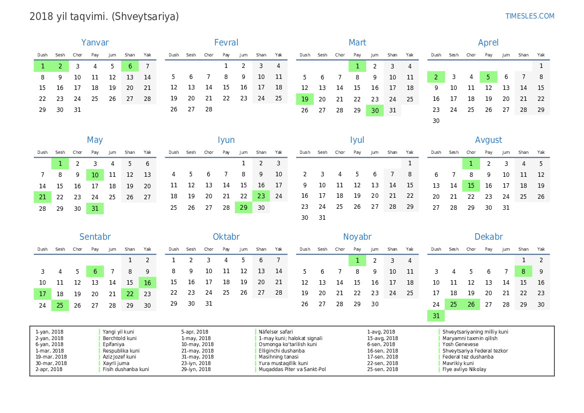 1-avg, 2018 Shveytsariyaning milliy kuni