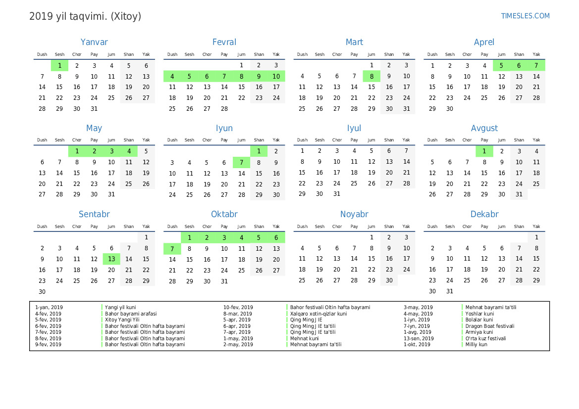 1-yan, 2019 Yangi yil kuni