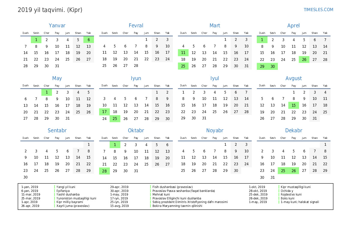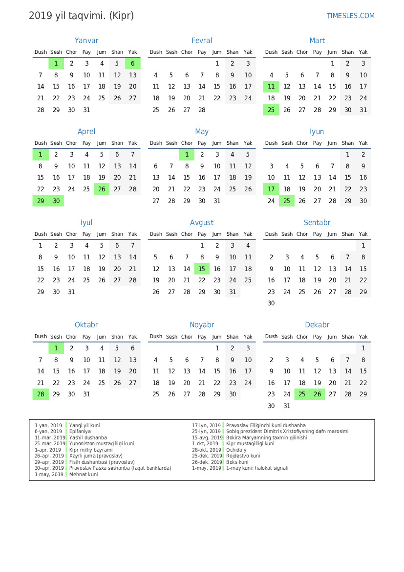 30-apr, 2019 Pravoslav Pasxa seshanba (faqat banklarda)