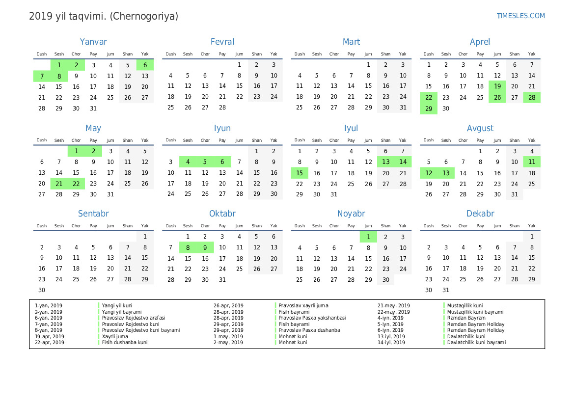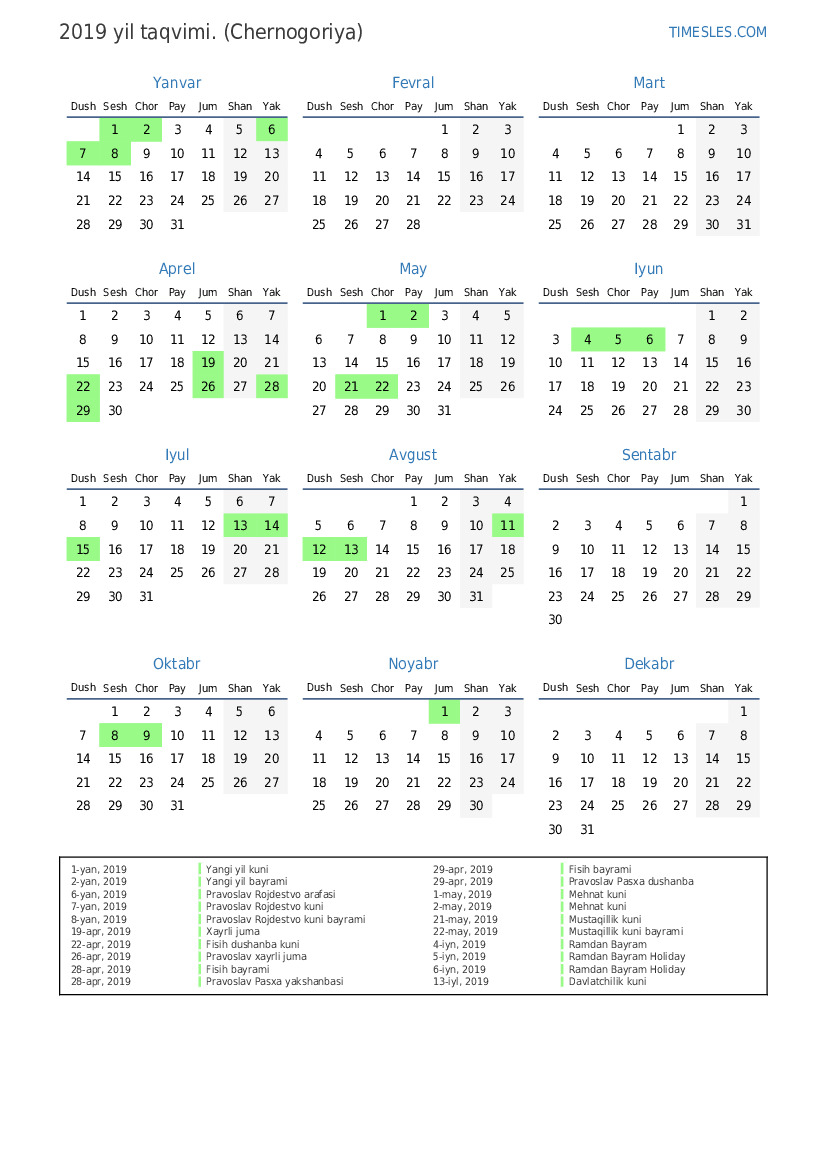 12-avg, 2019 Qurbon bayrami ta'tili