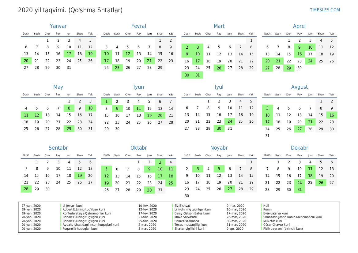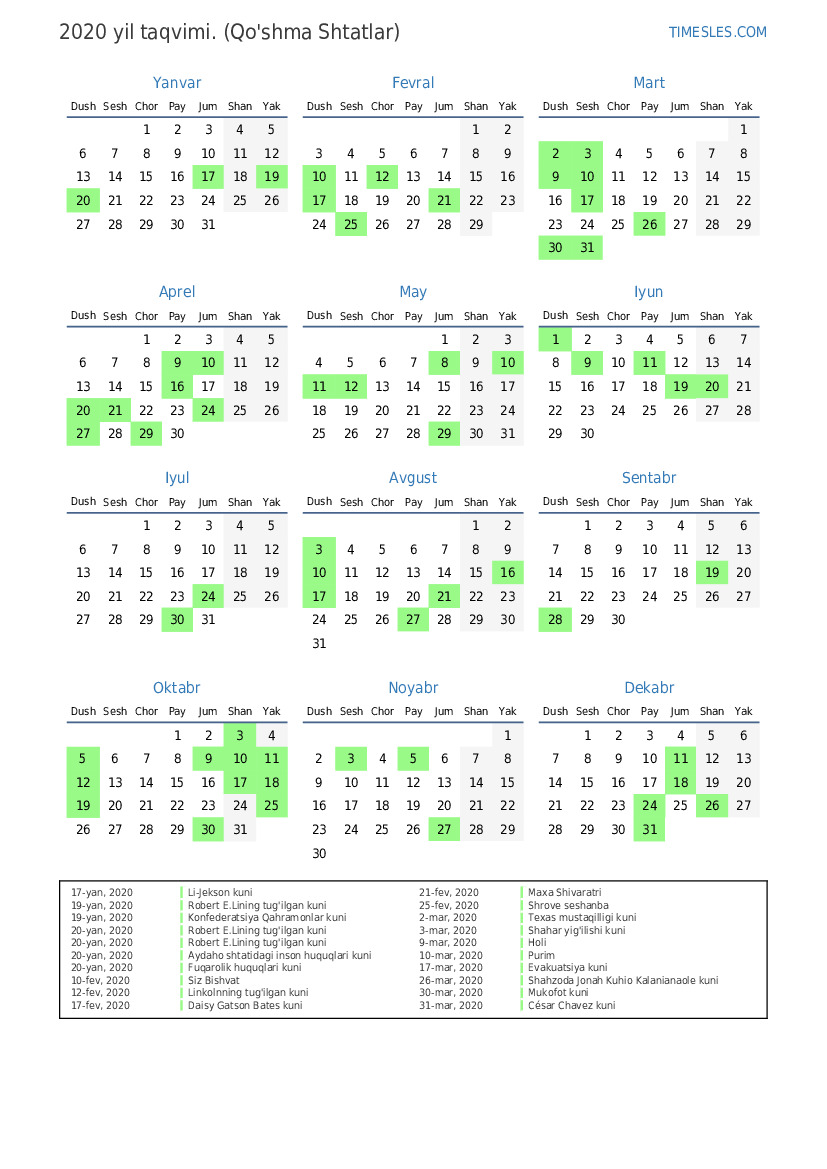 12-okt, 2020 Mahalliy xalq kuni (taxminiy sana)