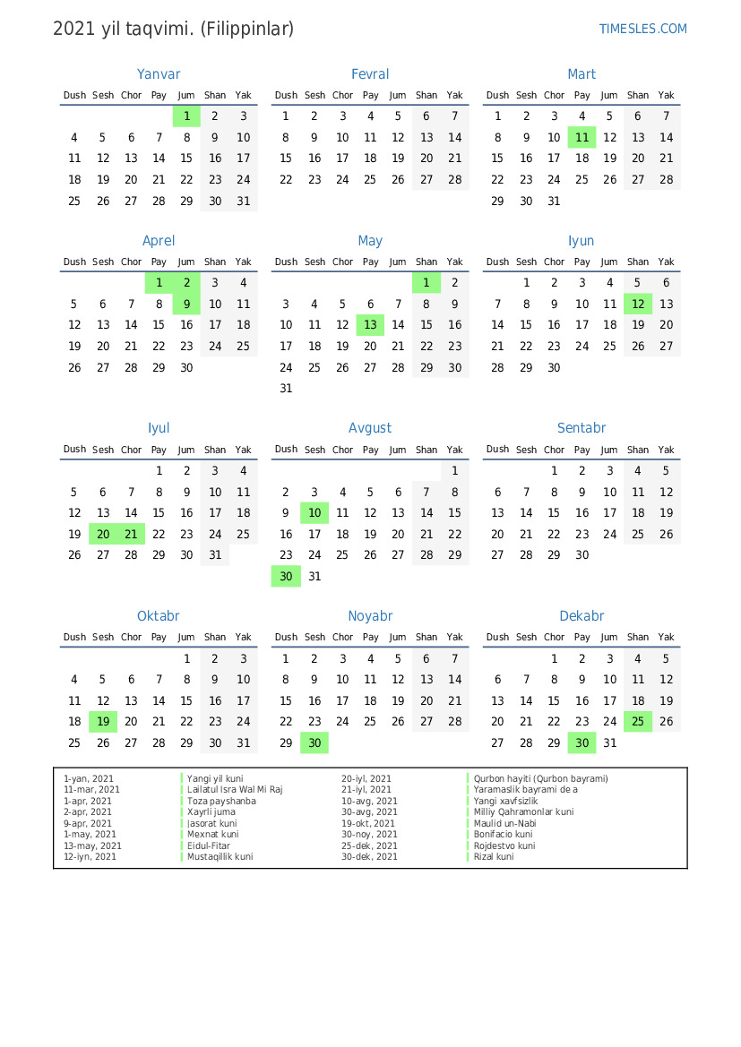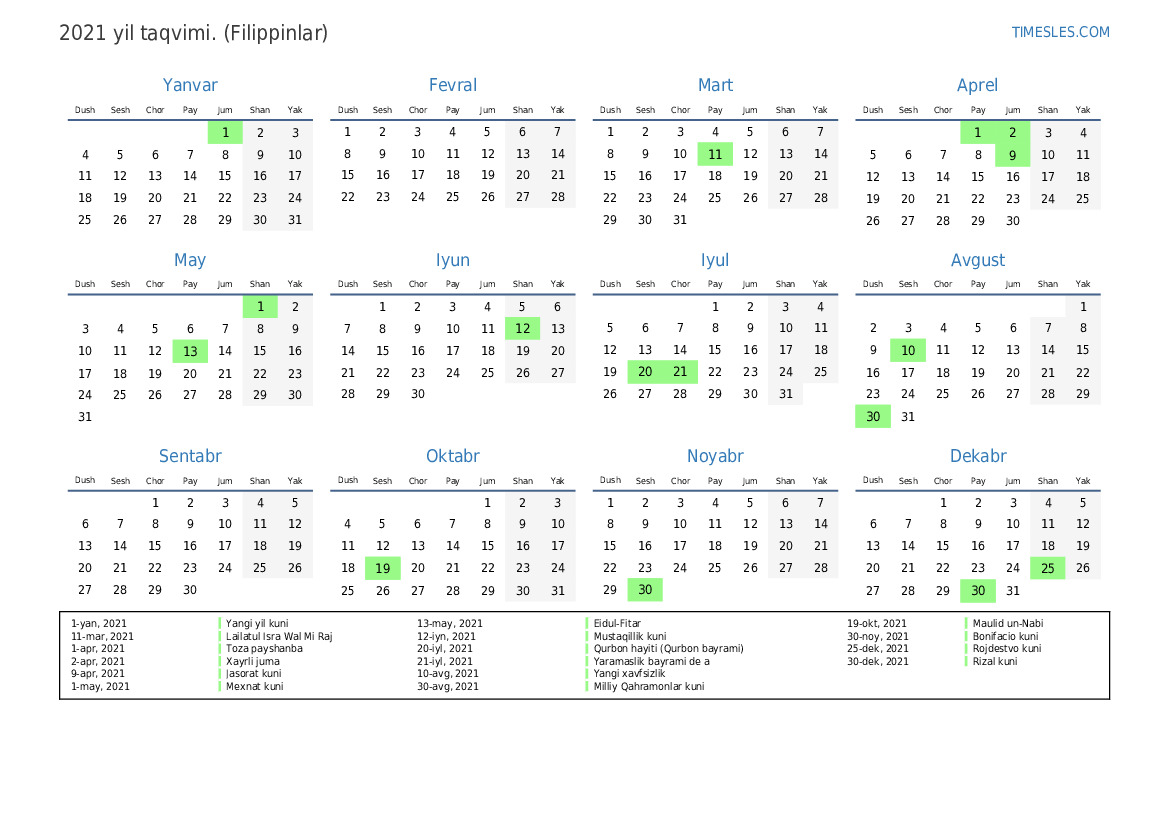 1-apr, 2021 Toza payshanba