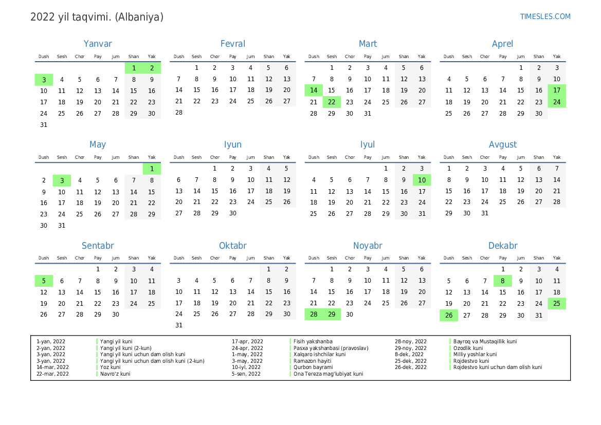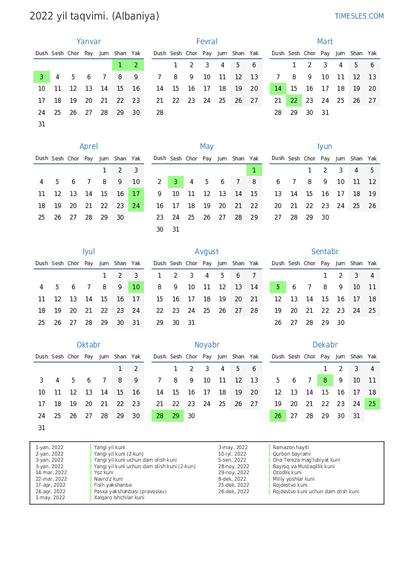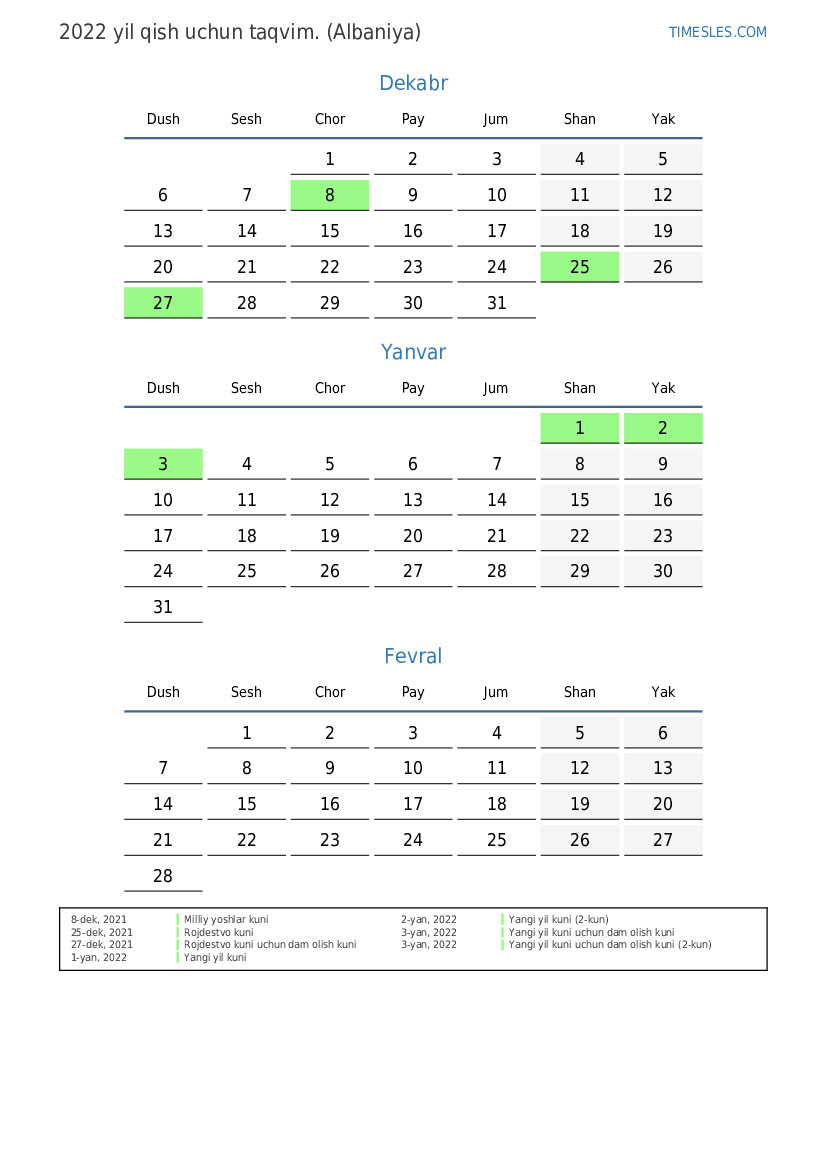 3-yan, 2022 Yangi yil kuni uchun dam olish kuni