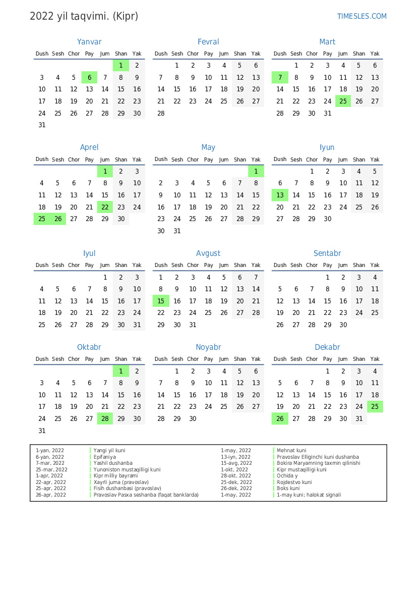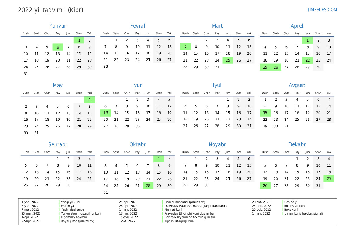 26-apr, 2022 Pravoslav Pasxa seshanba (faqat banklarda)