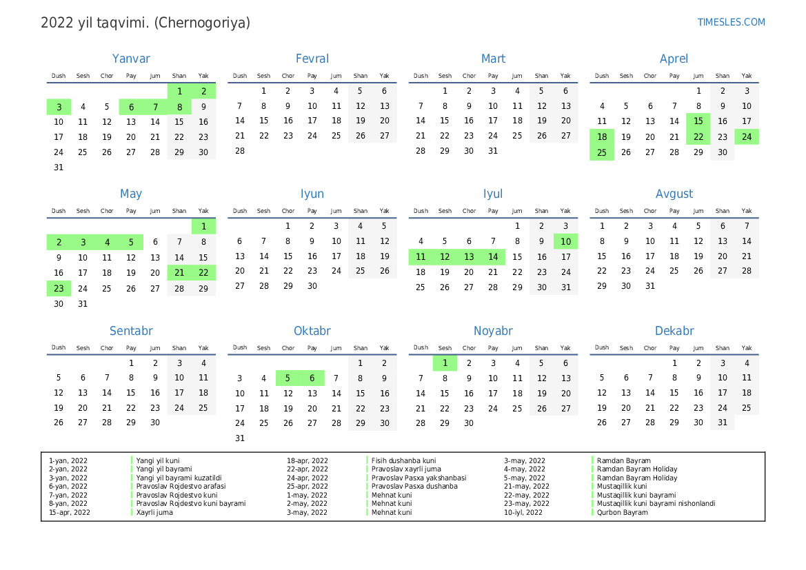 11-iyl, 2022 Qurbon bayrami ta'tili