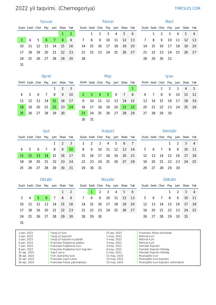 25-apr, 2022 Pravoslav Pasxa dushanba