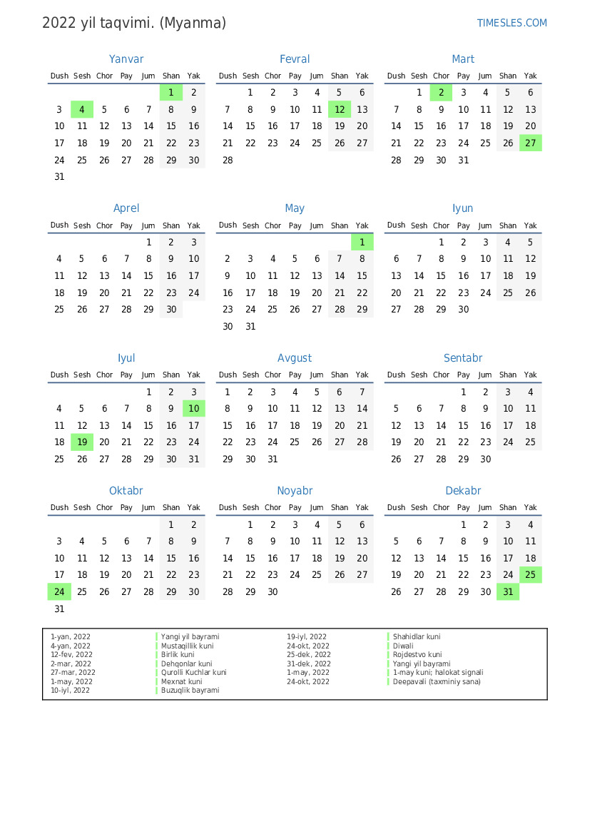 1-yan, 2022 Yangi yil bayrami