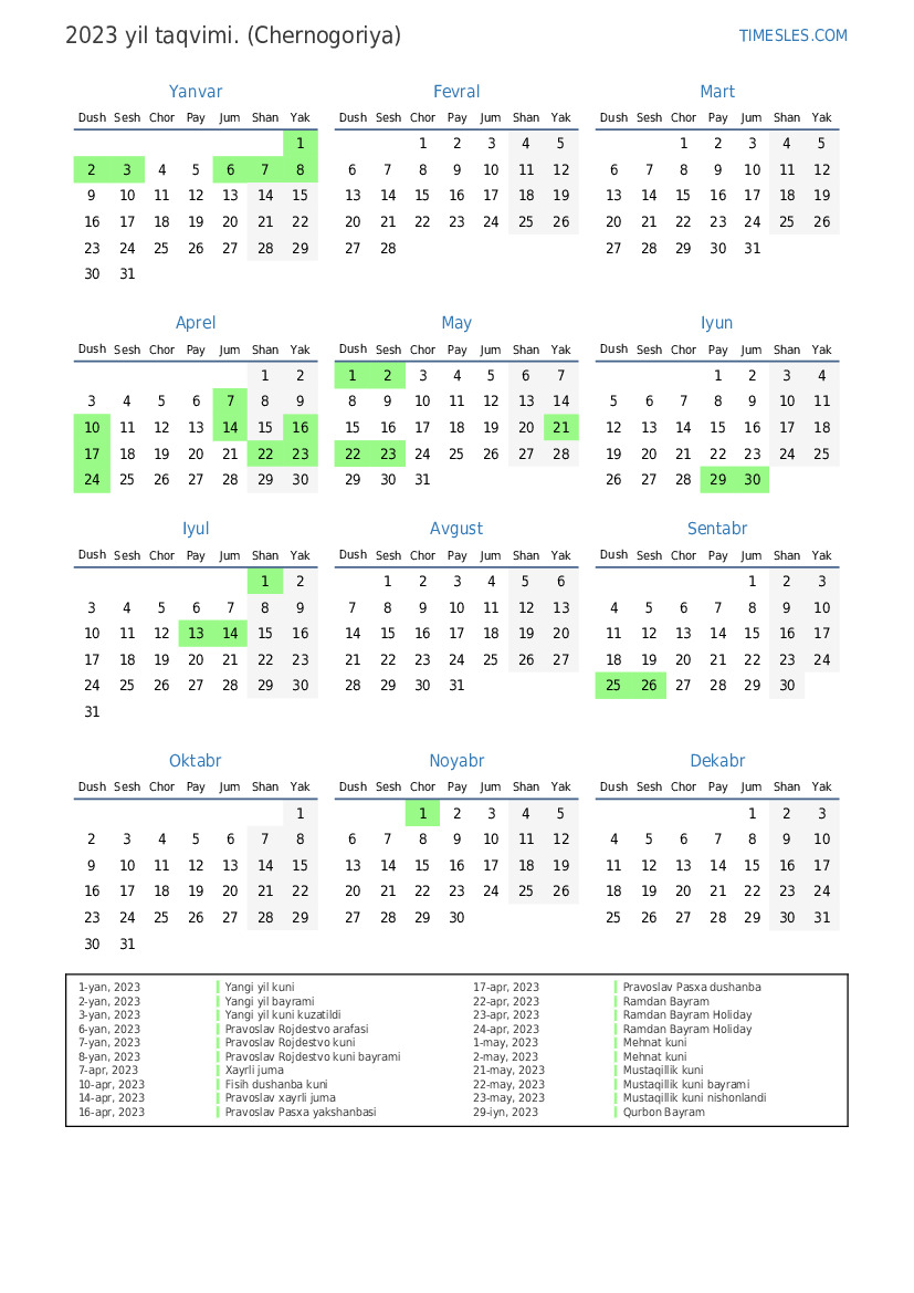 1-iyl, 2023 Qurbon bayrami ta'tili