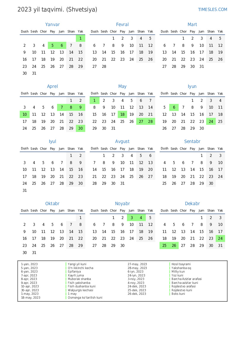 1-yan, 2023 Yangi yil kuni