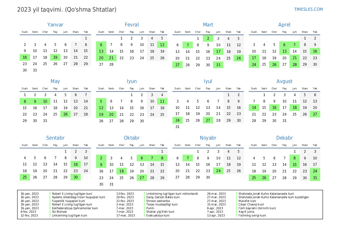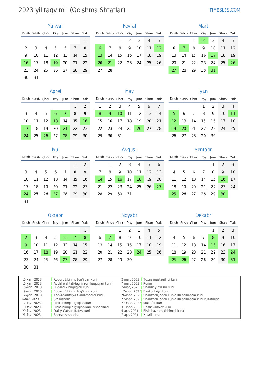 2-yan, 2023 Yangi yil kuni uchun dam olish kuni