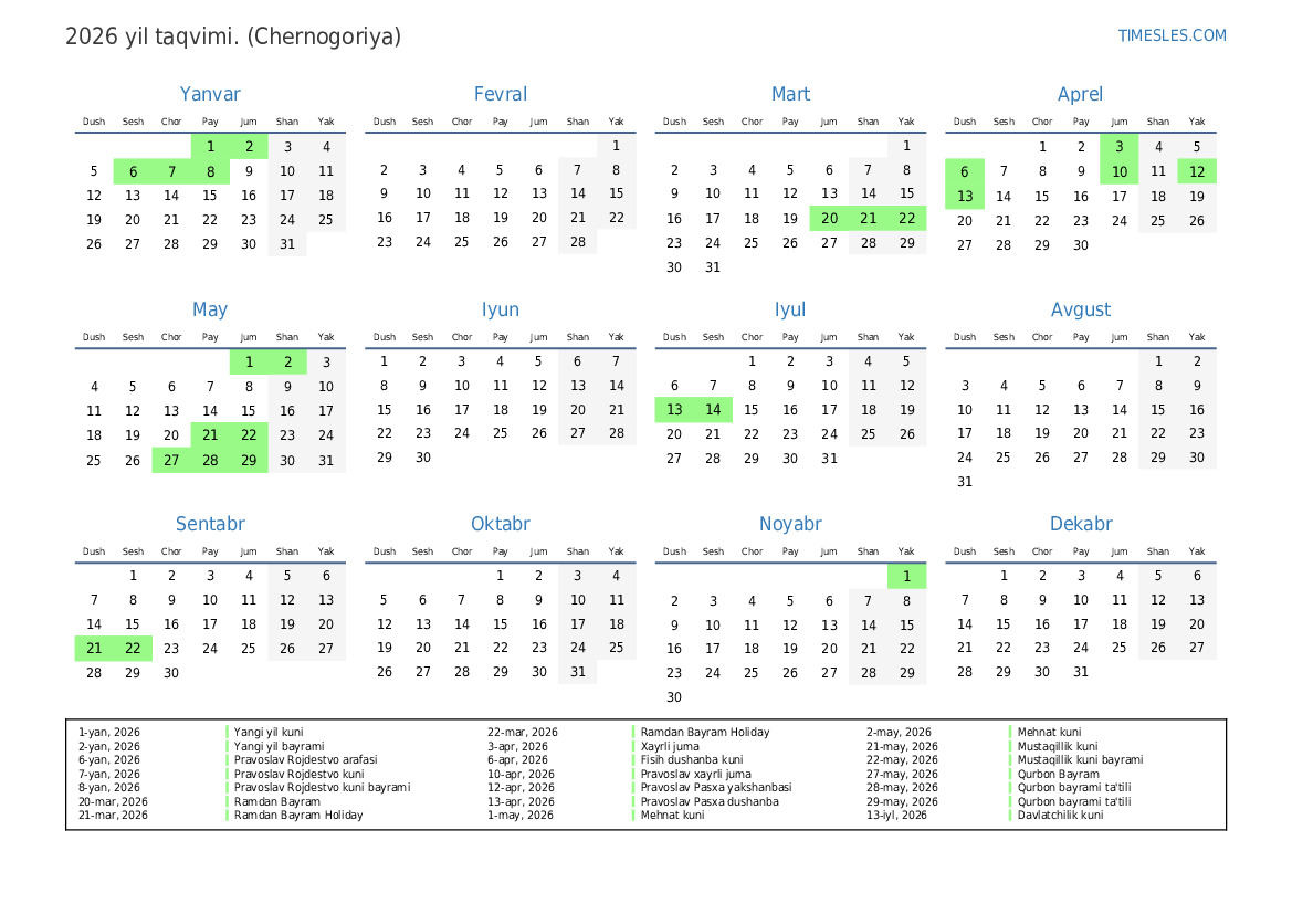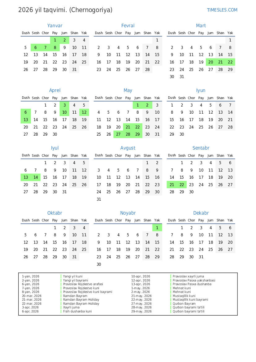 13-apr, 2026 Pravoslav Pasxa dushanba