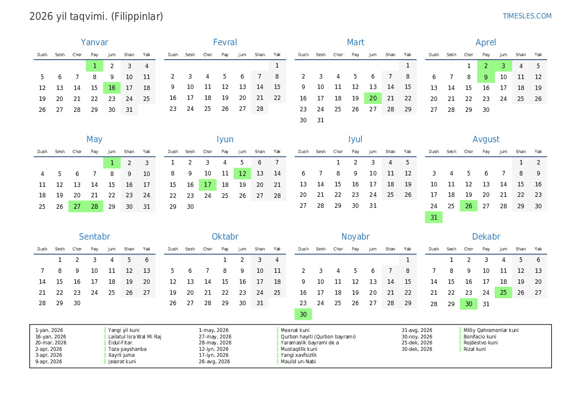 2-apr, 2026 Toza payshanba