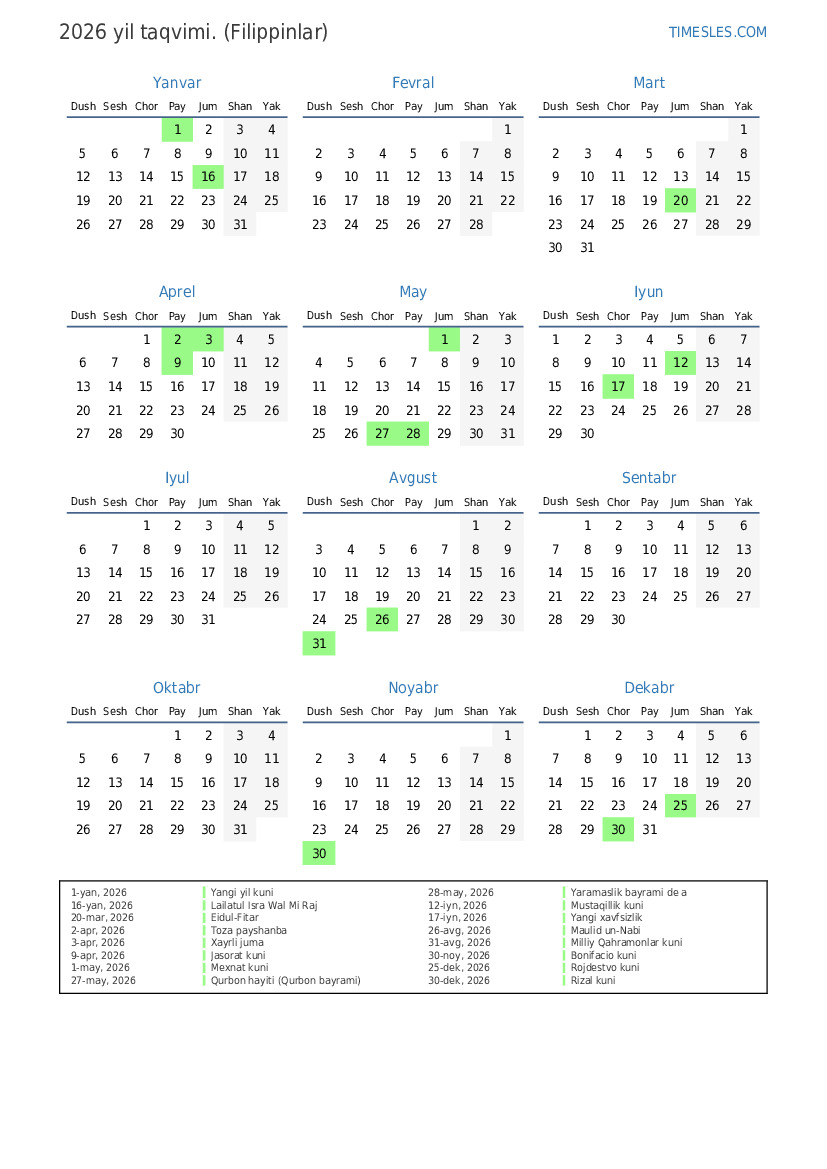27-may, 2026 Qurbon hayiti (Qurbon bayrami)