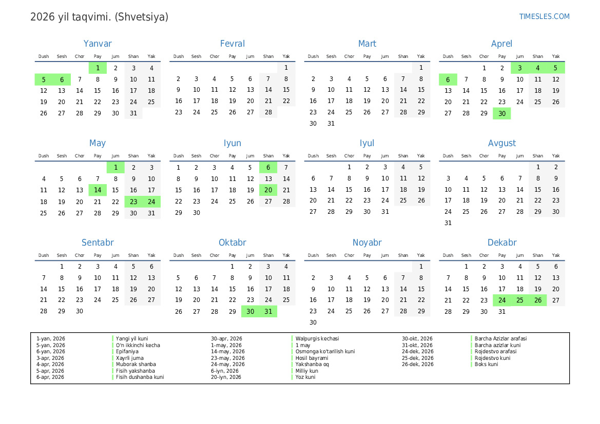 30-okt, 2026 Barcha Azizlar arafasi