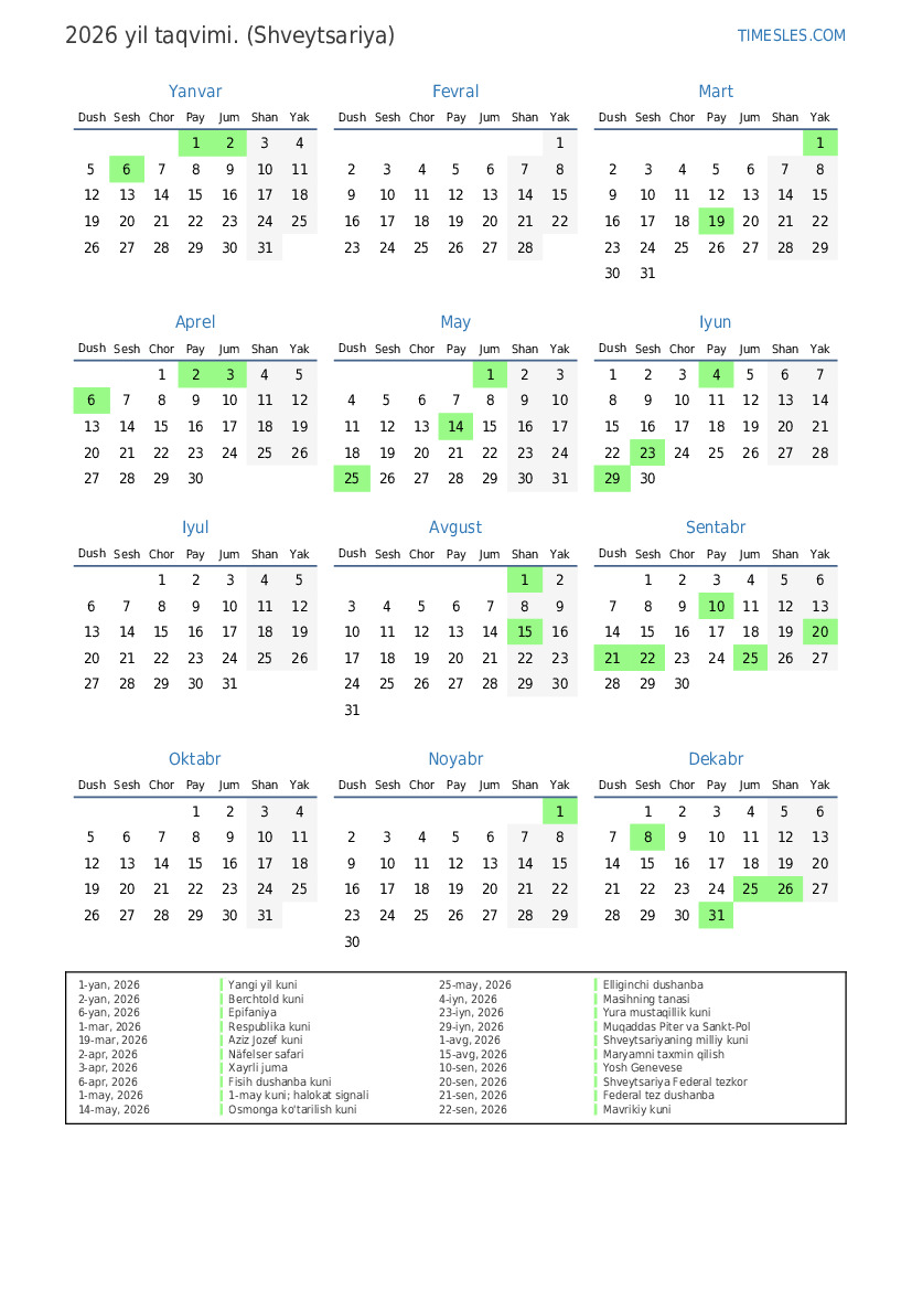 1-avg, 2026 Shveytsariyaning milliy kuni