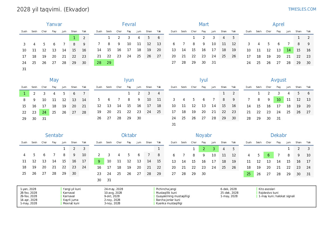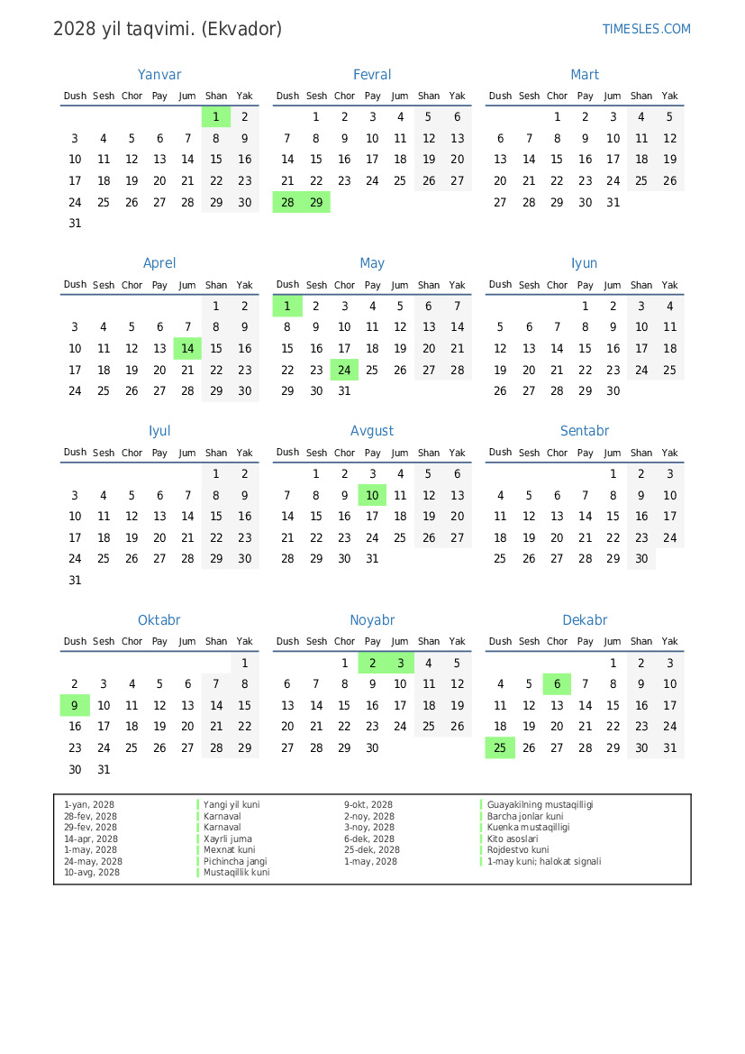 1-yan, 2028 Yangi yil kuni
