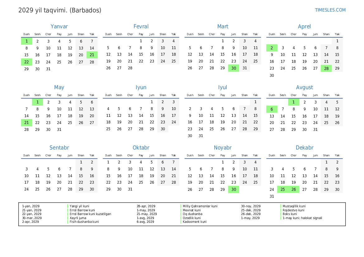 1-yan, 2029 Yangi yil kuni