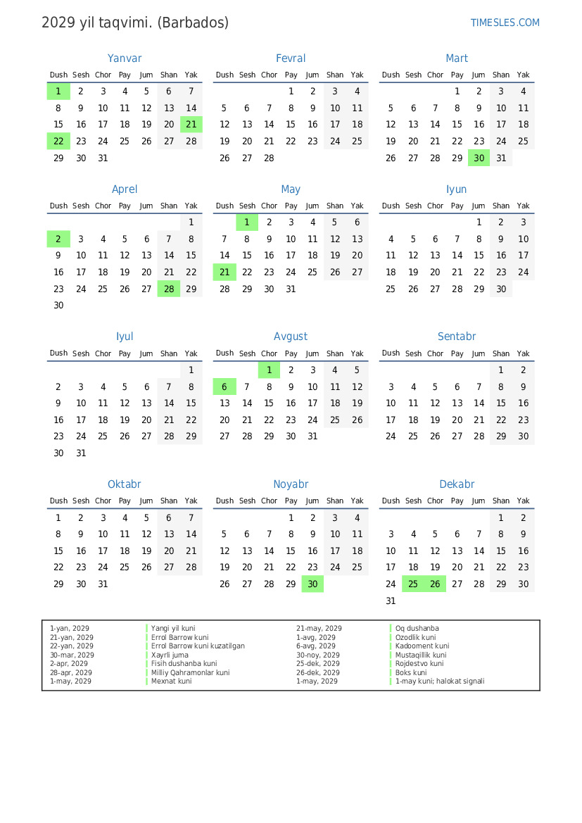22-yan, 2029 Errol Barrow kuni kuzatilgan
