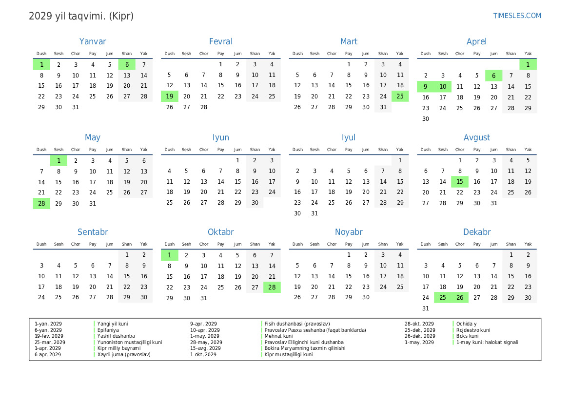 10-apr, 2029 Pravoslav Pasxa seshanba (faqat banklarda)