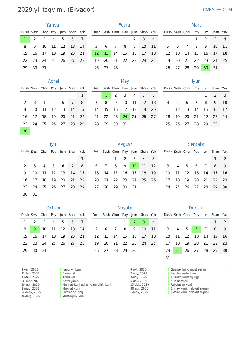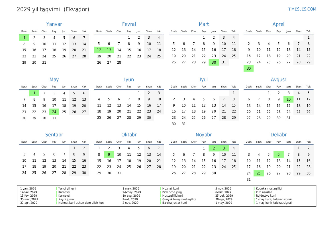 30-apr, 2029 Mehnat kuni uchun dam olish kuni