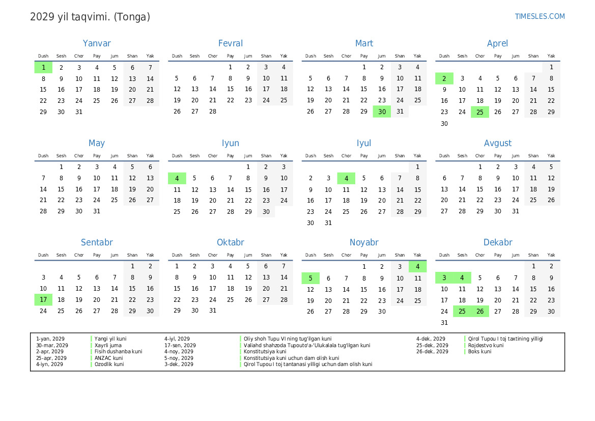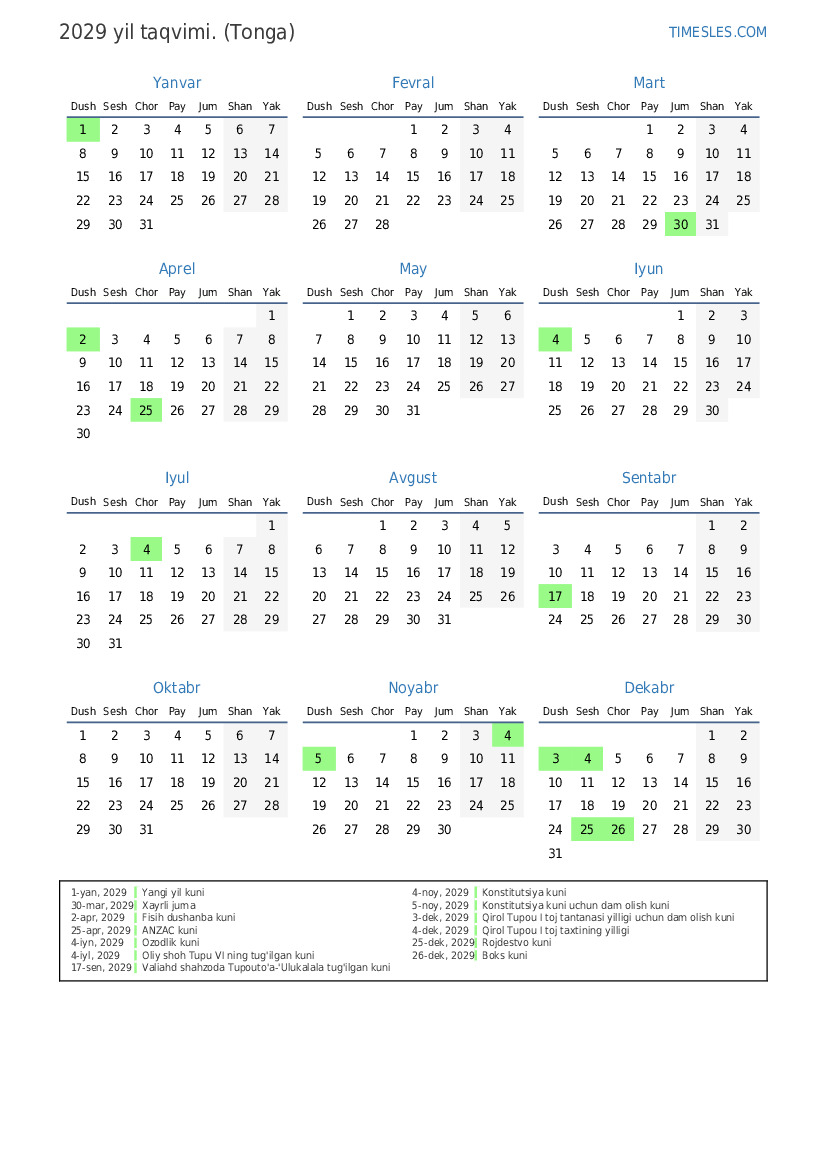 3-dek, 2029 Qirol Tupou I toj tantanasi yilligi uchun dam olish kuni