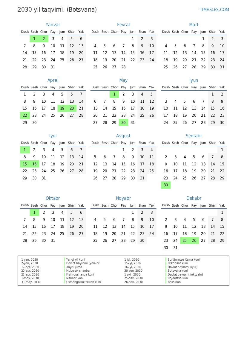 1-okt, 2030 Davlat bayrami (oktyabr)