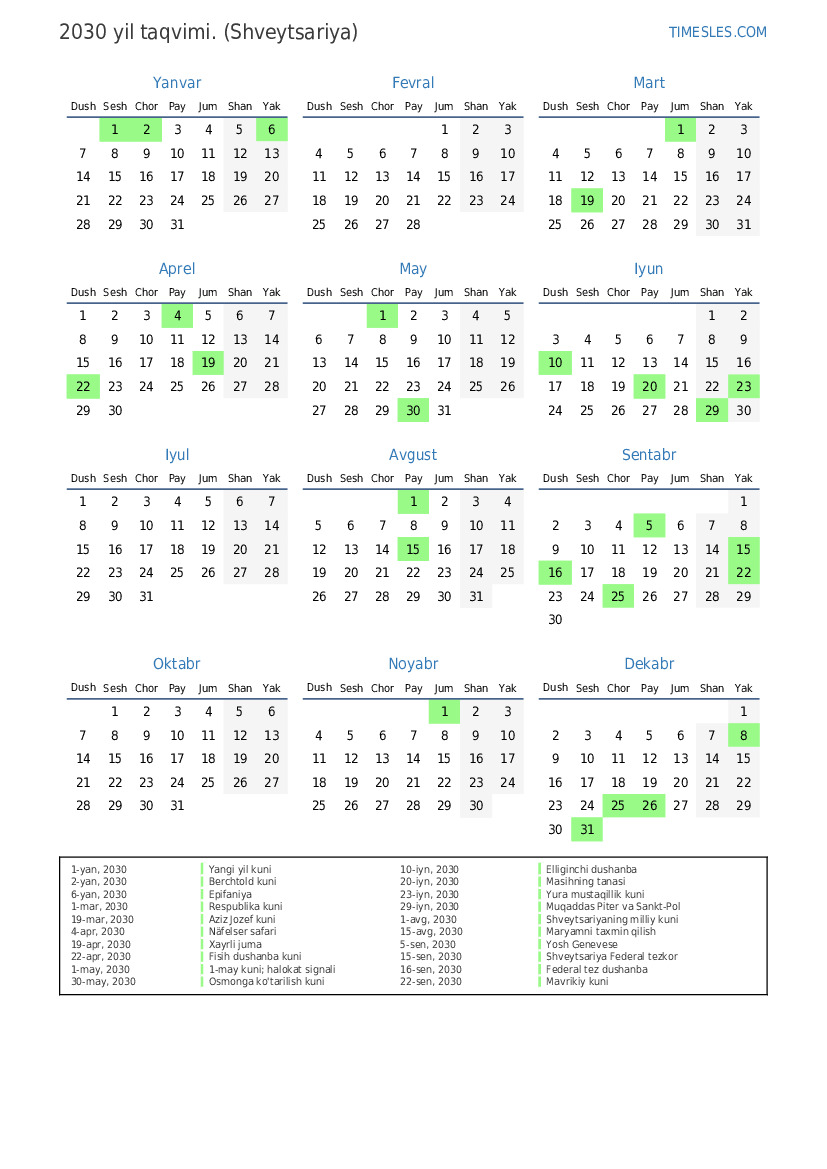 16-sen, 2030 Federal tez dushanba