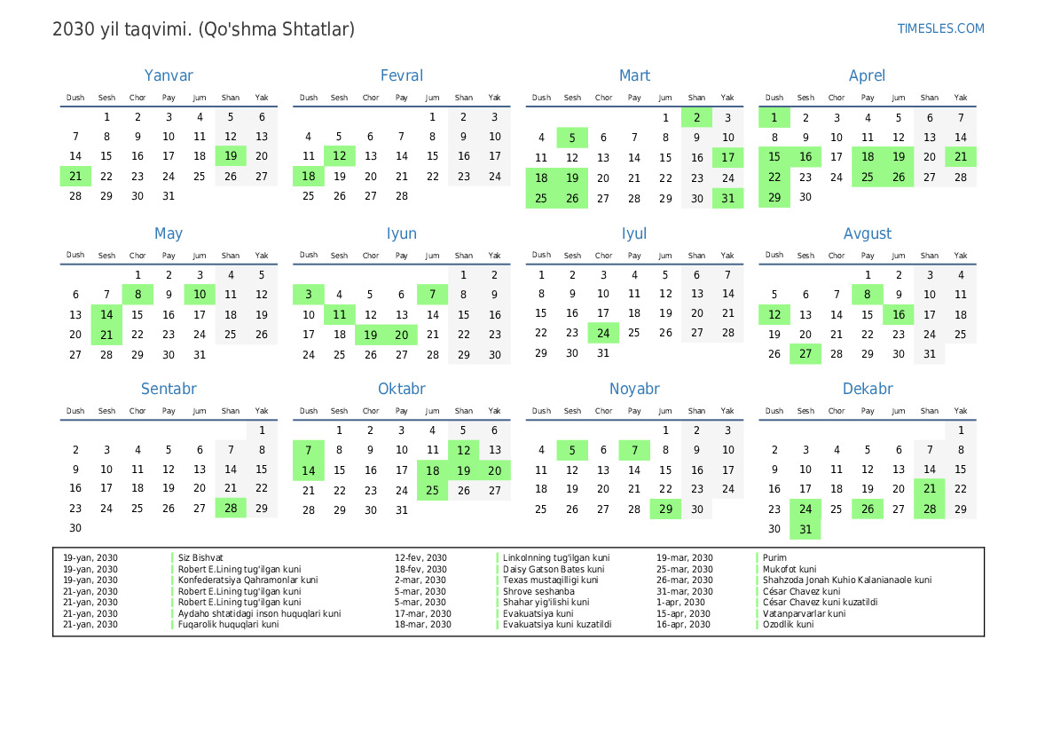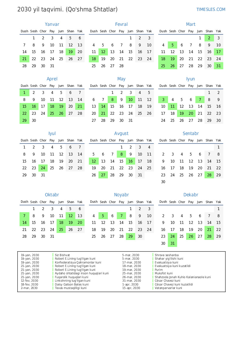 14-okt, 2030 Mahalliy xalq kuni (taxminiy sana)