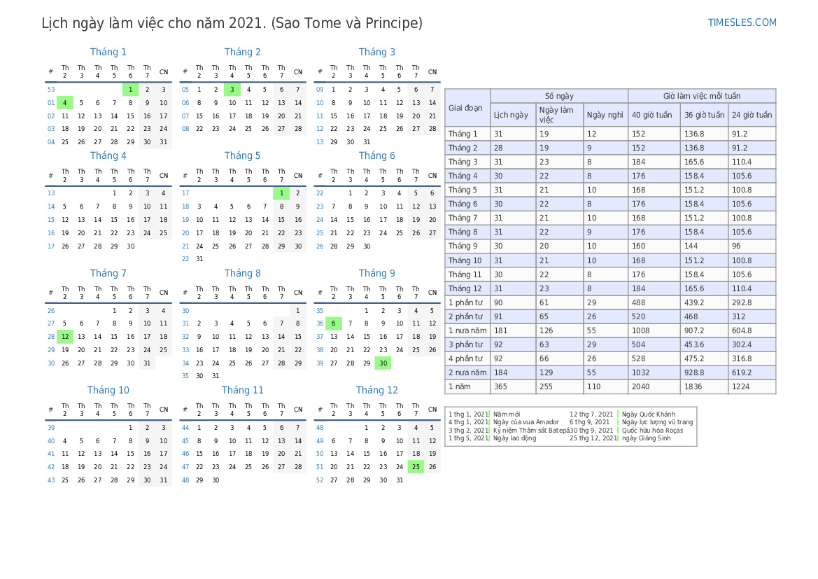 Lịch ngày làm việc Tháng 4 năm 2021 cho Sao Tome và Principe