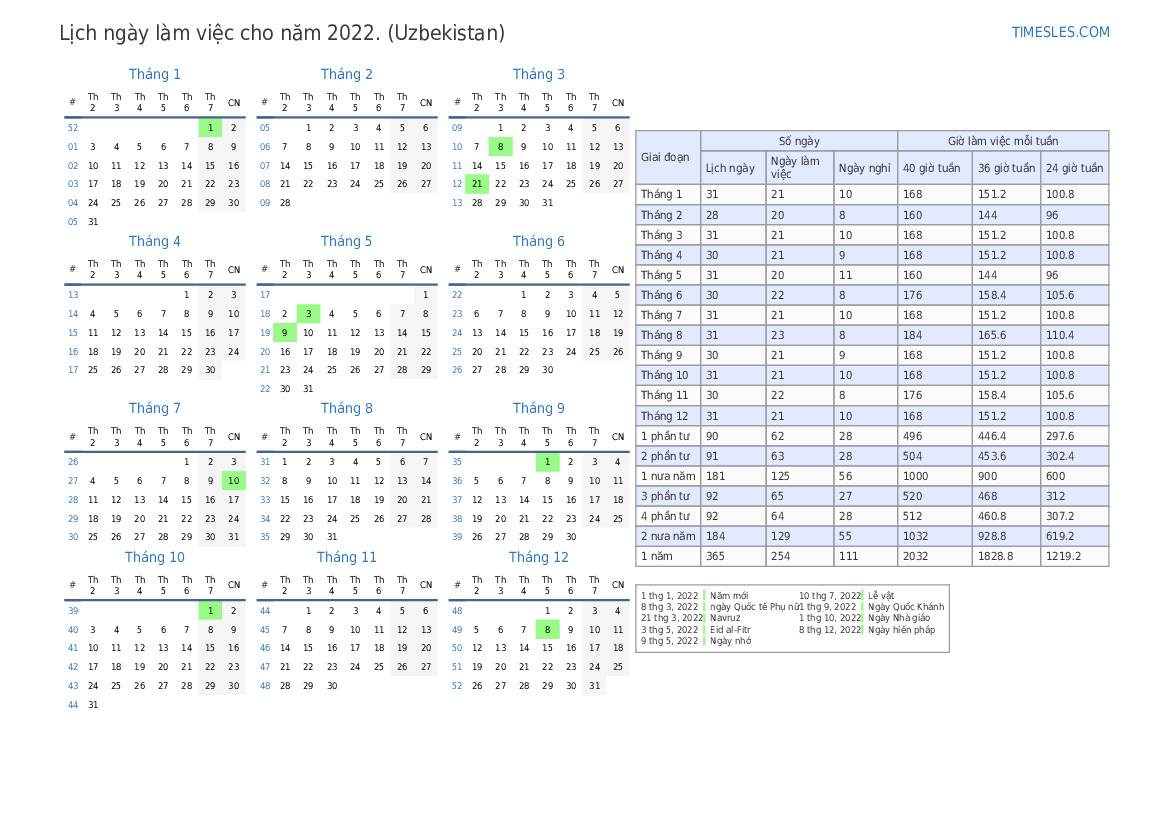 | 40 giờ tuần | 168 |